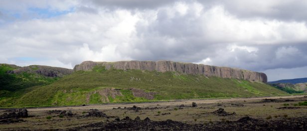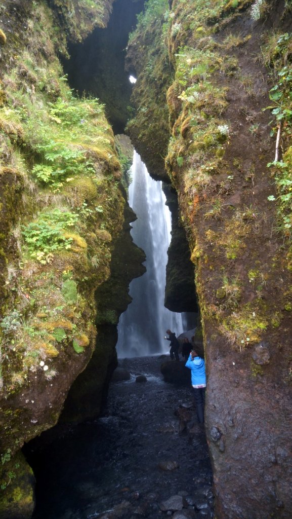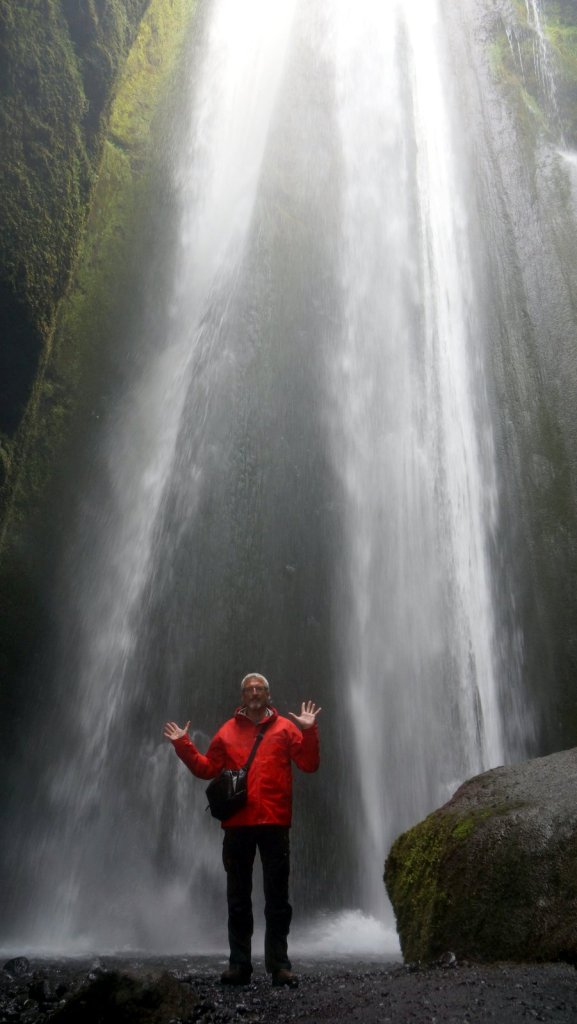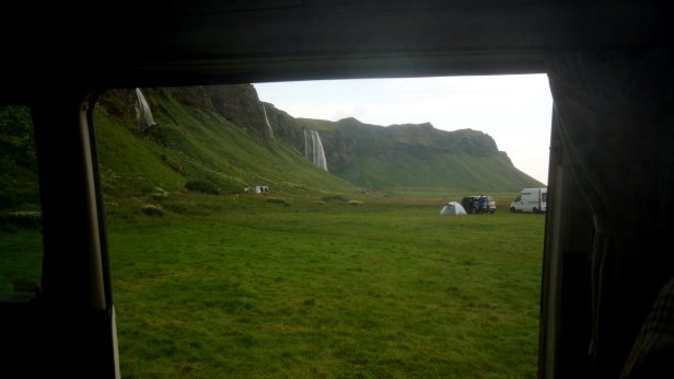 After some more corrugated roads we made it back to the tarmac and had a relaxed drive over Rt. 26 to the main Rt.1 at Hella. A bit further on the coastal plain narrows because of Katla, a sub-glacial volcano. We stopped at the bottom of the mountain and stayed on a large campsite with 3 separate waterfalls coming off the cliff. We will fell asleep with the noise of falling water.
