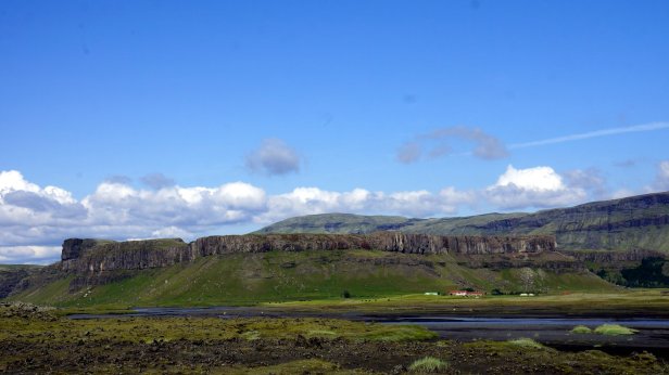We drove only some 28 km to our first stop “the Skogar waterfall”. This 62 m high waterfall drops down a cliff. It is a powerful water stream and you can get close to the splash zone if you want to become wet. These falls are a major attraction and it has a large camping area along the walkway to the falls. Not really our style of camping and it was too early to stop anyway.