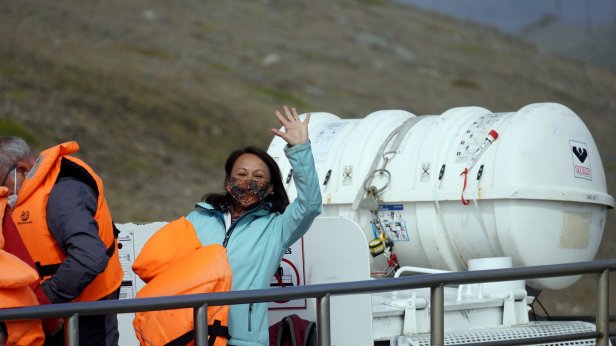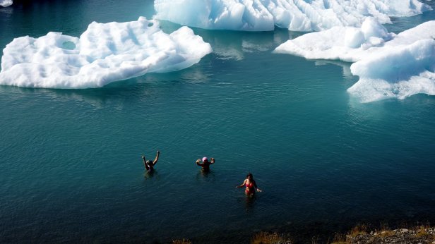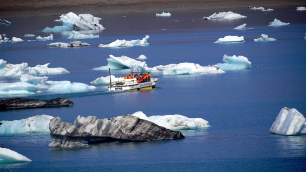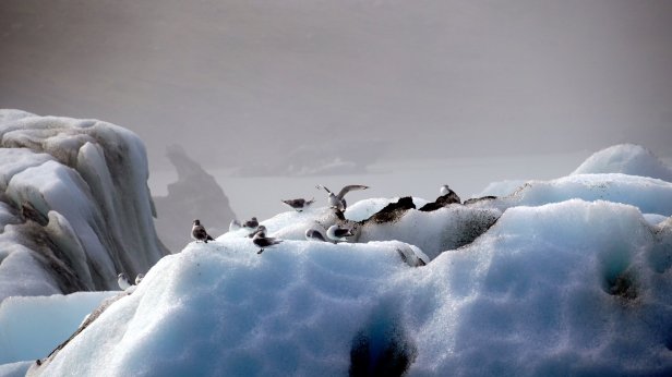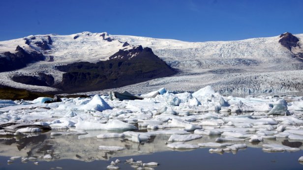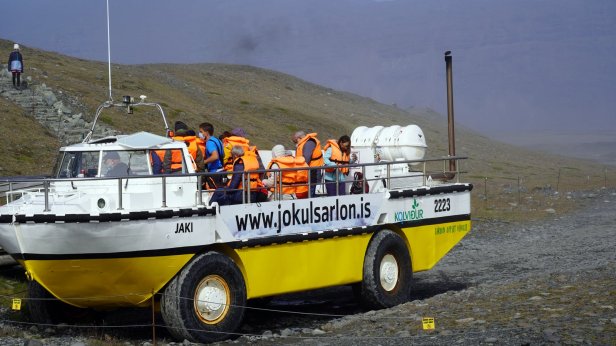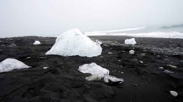 Before leaving the campsite (Day 26) we did a walk towards the glacier. Later on we made 2 stops at different glacier lagoons. These waters are just in front of the glacier tongue and large blocks of ice are floating in them. Jamaliah made a boat tour on one of these lagoons. At one point, the lake flows into the sea and takes the smaller iceblocks with it. These break up in the sea and get washed ashore and glistered like diamonds on the beach. The night was spent at a small campsite, Stokksnes, which is on a peninsula sticking into the Atlantic ocean. This is the site of a NATO radar station from WW2. That is now gone but there is a film set of a Viking village. They were busy doing some filming so we were not able to visit it. Although most of the day was very sunny, there were low clouds of mist flowing from the sea into the land. Unfortunately the campsite is in the middle of one of these clouds so it is cold and damp. One good thing though, they have good Wi-Fi. Since this place is not on the Ring Road, we thought there will be not many people around. But unfortunately, it was not so. More travellers (with campers and tents) came so the site filled up before sunset.