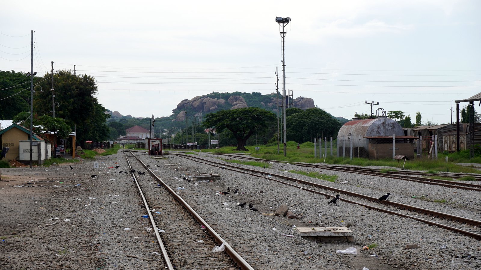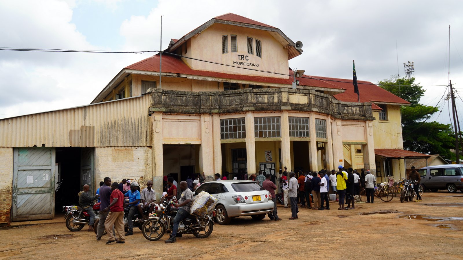 The road to Morogoro first goes through a swamp area over the Ruvu river. Here rice planting is ongoing, waiting for the rainy season to start mid march. Further up there are many stalls selling pineapples so that must be the main produce. The landscape is first flat but then became hilly. Everything covered with grass of plantation crops (sisal, pineapple, peanuts). There are trees but not dense. You still see large bags of charcoal for sale. So the tree population is still shrinking. All fields are open and farm huts and villages are scattered around. This in contrast to Brazil where all fields are fenced off and hardly a tree remained. Morogoro itself lies at the foot of some large granite outcrops. We searched the town for the(German) railway station. It is on a muddy road outside the town centre. Obviously not used very much and therefore run down. There are only 2 trains per day and there was already a queue for tickets.