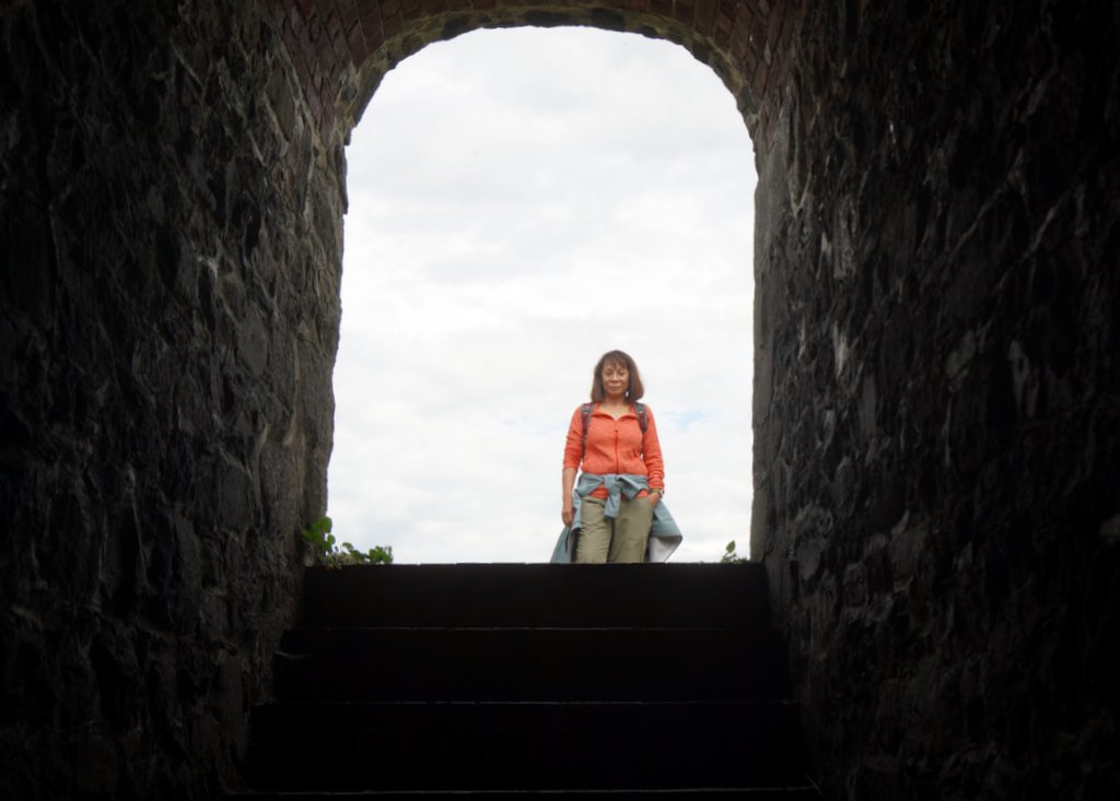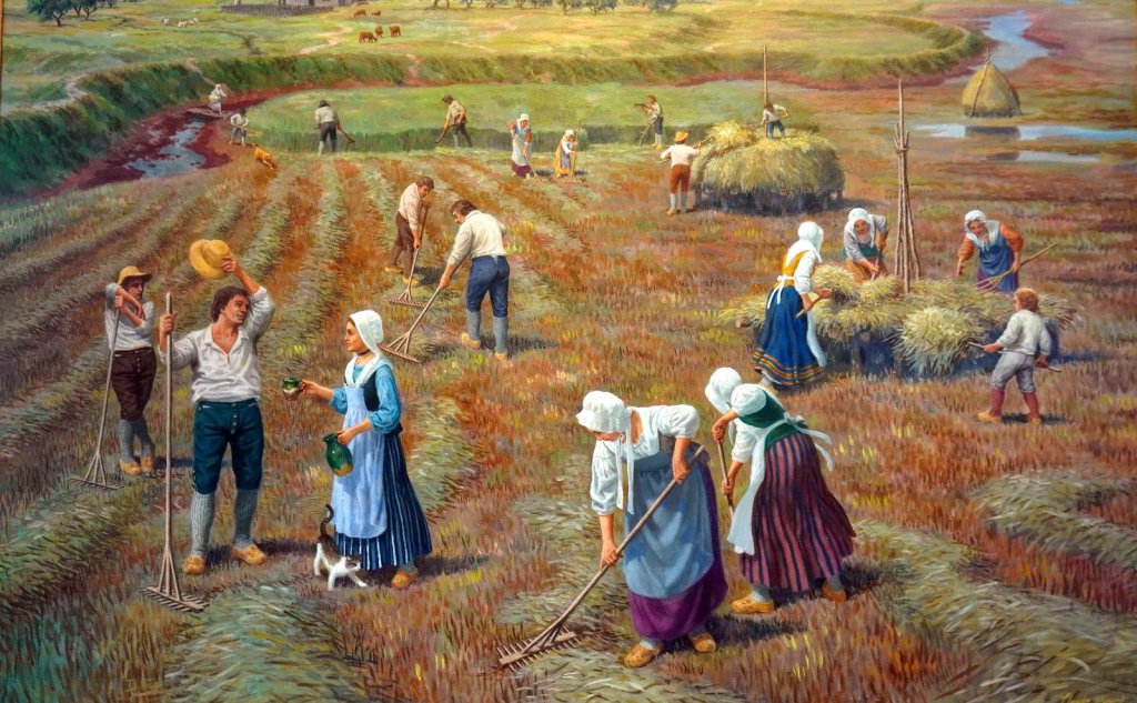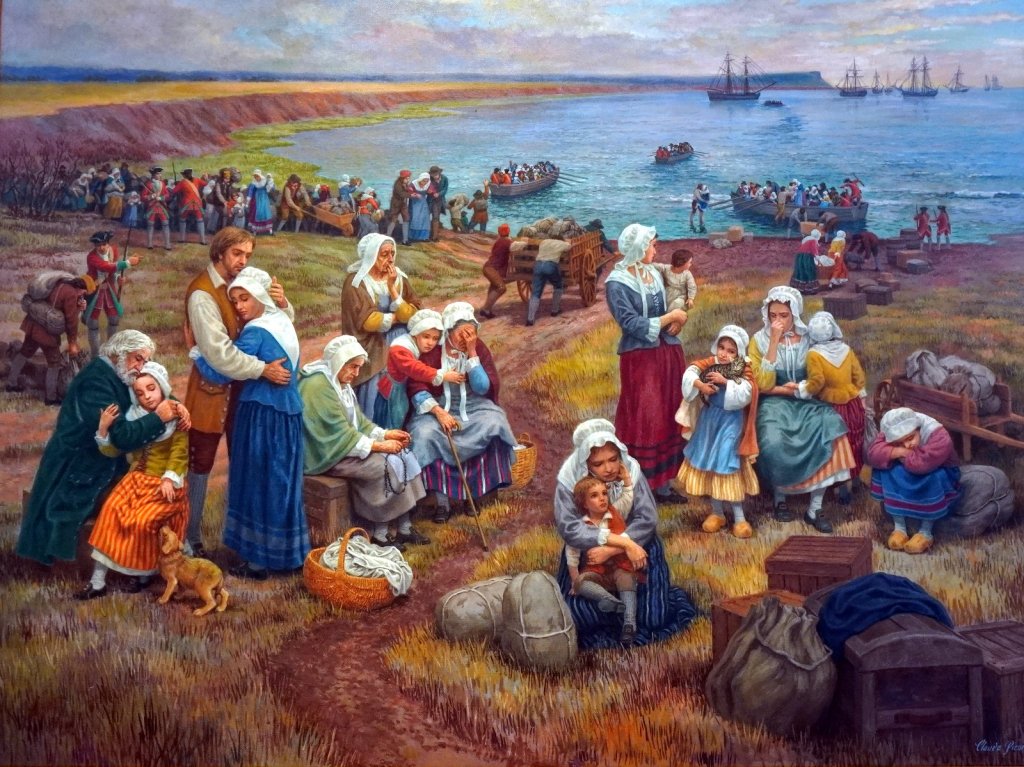 On Friday 3/6 we rounded the southern coast and drove, again over the small coastal road, north with a first stopover for self-made lunch at the lighthouse at Cape Forchu near Yarmouth. The rock formation is very different here. Up till then the coastal rock is granite. Here it is green volcanic rock from a volcanic eruption some 300 million years ago. There is a nice walk around the outcrop and the sea inlet. The area we were driving through was settled by the French speaking Acadians after they returned from their Diaspora by the British around 1755. We drove further North and then East along the wide bay of Fundy towards Annapolis Royal, a fort in the Annapolis valley. This valley was original settled by the Acadians in 1605. They lived for 150 year in harmony with the local First Nation people, the Mi’kmaq. Over the years the control of Nova Scotia and the fort in Annapolis Royal changed hands many times between the British and French pending the political state in Europe. The Arcadians managed to stay outside of this struggle till in 1755 when they were forced to swear allegiance to the British crown. They refused this and were subsequently deported by ships to many different British colonies along the eastern coast of America. Their land was taken over by the retreating United Imperial Loyalists after their defeat in the American revolution. Some of the Arcadians settled in Louisiana at the invitation of the Spanish, who at that time ruled the Southern part of the Mississippi river. These settlers are nowadays called Cajuns and still speak a dialect based on French. Some of the Arcadians came back to Nova Scotia after Louisiana was sold to the USA in 1764. Their land was occupied so they settled elsewhere along the coast.