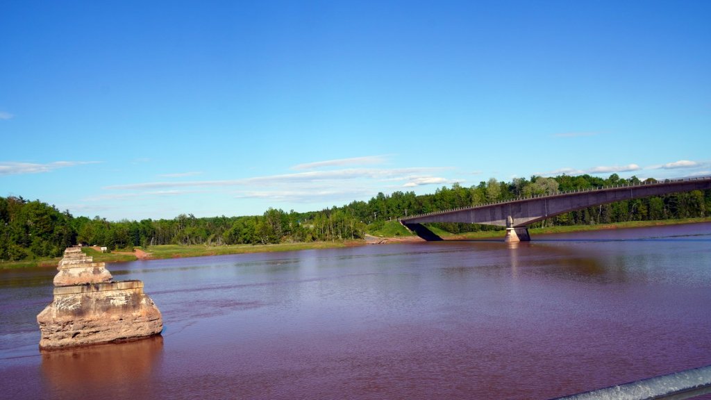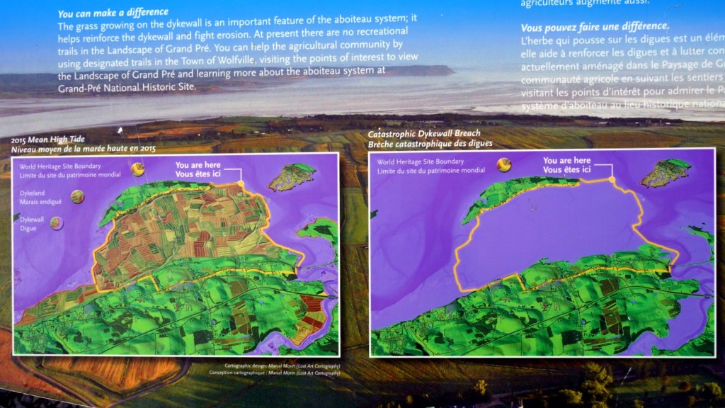 The next day we drove further up the Annapolis valley to Grand Pre. The Acadians had reclaimed land from the Bay of Fundy at this place by connecting the main land via 2 dikes to an island and via a sluice system to drain the water into the bay. The reclaimed land was very fertile. Unfortunately all the people were rounded up and deported. To commemorate this, a world heritage remembrance park has been established.