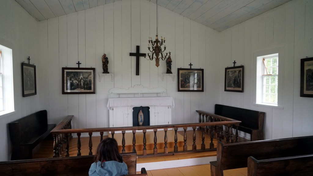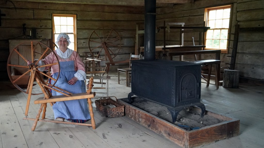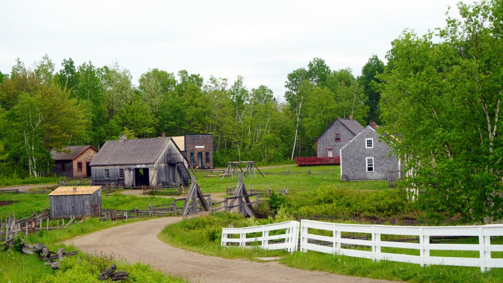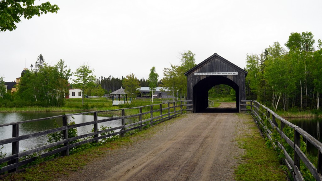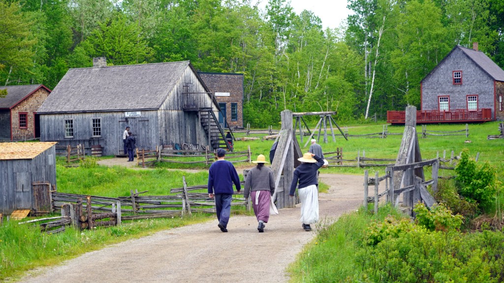 To make a bit of progress we drove north over highway 8 rather than the coastal road. At Allardville we turned towards the coast. We crossed a resettlement area of the Arcadian people who came back from the Diaspora (1755). The hills were forested with few widely spaced villages. Each village had a catholic church. One bigger than the other. Most people work in forestry or in the nearby zinc mines. Along the coast they mostly live off farming and fishing. Our main attraction is the Acadian Historical Village. This collection of historical buildings (35 in total) was started some 44 years ago. It had just re-opened as normal for tourists after 2 years Corona, a day before our visit. We were very lucky since we had not planned any visit details in advance. The village is so interesting (it normally takes more than 3 hours to see everything) that we spent the night close by and came back again the next day. The oldest house is from 1773 and the newest from 1949. Each house has a caretaker dressed in period clothes of the time which is also reflected in the interior. Some buildings are farm houses while there are also workshops (blacksmith, barrel maker) as well as a traditional bar and general store. In the 20th century section there is also a Hotel (1907) where you can still stay the night. The re-enactors are very knowledgeable and explained what character they were representing and his/hers history. Some of them are doing this for over 20 years. In several places traditional meals were being cooked for lunch. In total we stayed some 7 hrs in this village before driving further to Quebec.