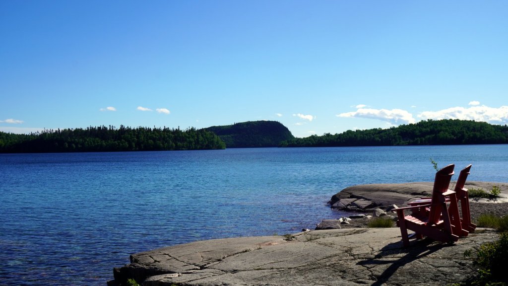 The drive along Lake Superior towards Thunder Bay is very scenic. Part of the road goes through the Lake Superior Provincial Park. The road is well maintained and compared to the other roads we did in Ontario this was less busy. At several points along the road crews are busy restoring the bridges which are washed away during the annual flooding due to the melting of the snow. We drive a steady pace of 80 – 90 km/hr and are often overtaken by trucks. The area still has its native forest covering the high hills along the lakeshore. Some of the towns started off as mining towns in the beginning of the 20th century. Now the ore (gold) has gone and the town people work in the bigger mines in the interior. There are several rest stops along the way. Some of them go down to the lake. We stopped at two of these lovely wild campsites. Sometimes we are alone and other times were joined by other fellow campers. We have been fortunately with the weather. After several very warm and sunny days it is now a bit cooler with occasional rains in the afternoon followed by cool evenings.