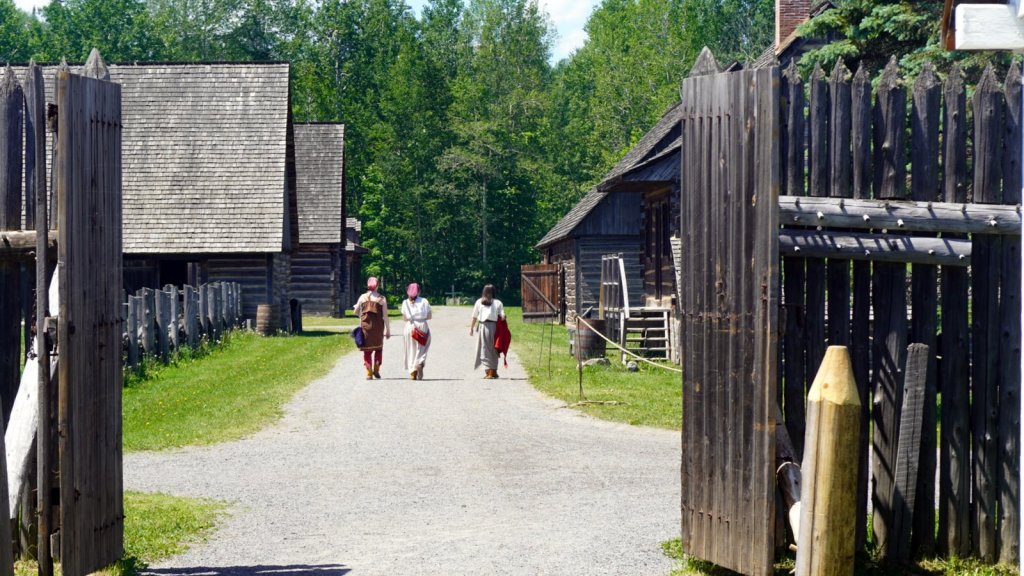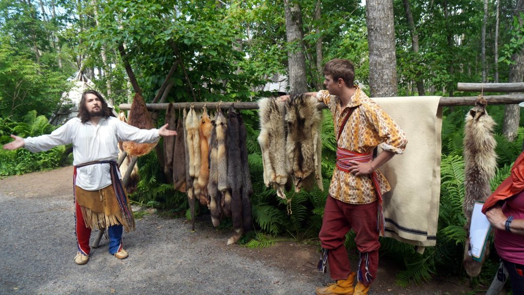 We made it to Thunder Bay later in the afternoon than planned because we were searching for a new GPS system. Our Garmin GPS didn’t work anymore. Luckily we found one (also a Garmin) but smaller and simpler version. We arrived at the campsite just before the rain started pouring down and thunder and lightning was all around. The campsite we stayed in is part of the Fort William Heritage Park. It has a large ( windy) grass field with full hook-up facilities but not many campers. Also in the Heritage Park there were not many tourists today. We were fascinated by the well organised centre and stayed for over 4 hrs. It is an accurate replica of the North West Company fur trade centre as it was around 1810. Staff in period costumes led you in small groups around the large enclosed trade centre. Since the Company was a private enterprise there were only facility buildings needed for the trade and staff. So there was no church and school. Several houses were used for storage of the pelts of all animals the country provided. Representatives of the company spent the winter months at small outstations and traded goods with the local natives for furs. It was a friendly symbiotic relationship. Both parties benefitted from the trade. There was a lot of intermarriages which strengthened the bond. The problems started once the government decided to open the country up for farmers and many came over from Europe. We decided to stay another night here and the sunny windy afternoon was spent lounging around the camper and talking to our US neighbours who are also very active caperers.