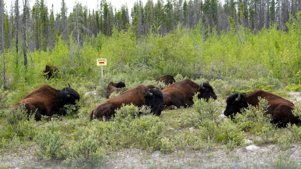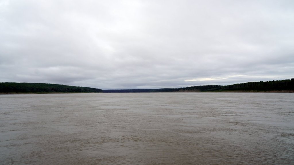 The drive back from Yellowknife first on the Yellowknife Hwy and then over the Mackenzie Hwy went smooth. In some places the road is a roller coaster. This could be caused by the thawing of the permafrost under the road. Again we saw some herds of Wood Bison grazing along the motorway. One car was enclosed by the herd while he had stopped at a rest area. When the Bison moved on he could finally leave. A good section of the Mackenzie Hwy is not paved yet. The condition of the road is however good so it does not slow you down too much. The car does get very dirty from the flying dust and your view is sometimes obscured by oncoming traffic. We were too late to make it to the planned camp site at Sambaa Deh Falls Park. So we stayed instead at a roadside pullout used by trucks to get water for spraying the dirt road. The next day we stopped at the park and walked to two of the waterfalls on the Trout river. Like in the Hay river, the falls had cut a deep gorge into the limestone riff. To get to Fort Simpson you cross the Liard river on a ferry and then drive a further 20 km to reach again the Mackenzie river where the settlement is. We stopped in the visitors office and met some German travellers (four of them we met earlier at Sambaa Deh park), who are also looking into the option of taking a 5-6 hrs scenic flight into the Nahanni park. Most flights are already fully booked. We agreed to fly with 2 of them on Sunday (day after tomorrow). We have to rent the whole plane (6-seaters) so hopefully somebody else will join us. It makes renting the plane less expensive.