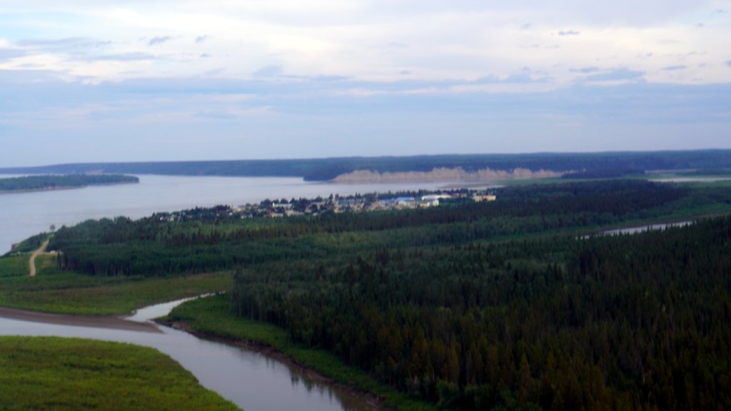 On our rest day we slept out and then went to a local potluck lunch at the Papal grounds. (The pope visited here in 1987). It was not very busy and we were invited to have lunch with the local Dehe people. After driving a bit around town along the Mackenzie river, we found a nice spot on the riverside to spend the next few hours. Several locals came by while walking their dog and stayed for a chat. One of them described his horrible time in the forced boarding schools he had to attend as part of the Canadian policy to assimilate the natives into the English speaking society.