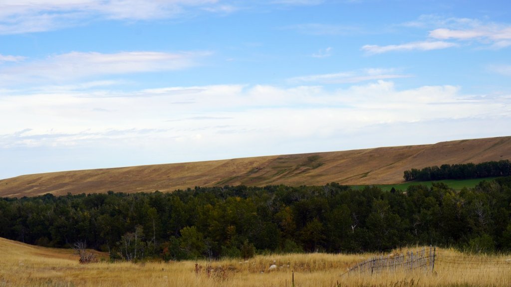The road to Helena went though the state forest. It was relatively busy with commuters going to work and now and then a logging truck. You climb out of the forested hills over the MacDonald pass (1970 m) to Helena which just lies on the other side of the continental divide. Here it is much drier and traditional prairie land. Here and there the land is irrigated with large walking sprinkler systems to grow grass, wheat or corn. In Helena we dropped into Burger king since Rudy was desperate for a decent piece of meat. The oversized hamburger was however too much even for him. At Wal-Mart we stocked up on groceries for the next couple of days in Yellowstone NP. There are not much camping places in the open prairies. We settled for a provincial campground at the Missouri Headwaters. Here 3 different rivers come together to continue as the Missouri river which later flows into the Mississippi river and then down to the Gulf of Mexico. The area was explored by the well known Lewis and Clark expedition of 1807 to find the source of the river and then make it over the mountains to the Pacific ocean. With the help of the local Indians they made it across.