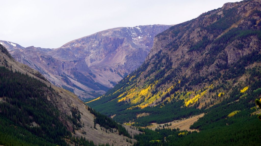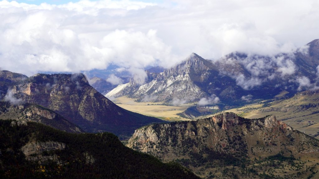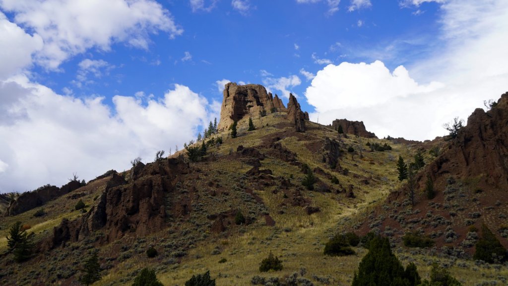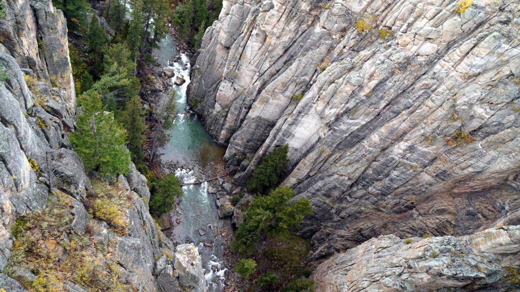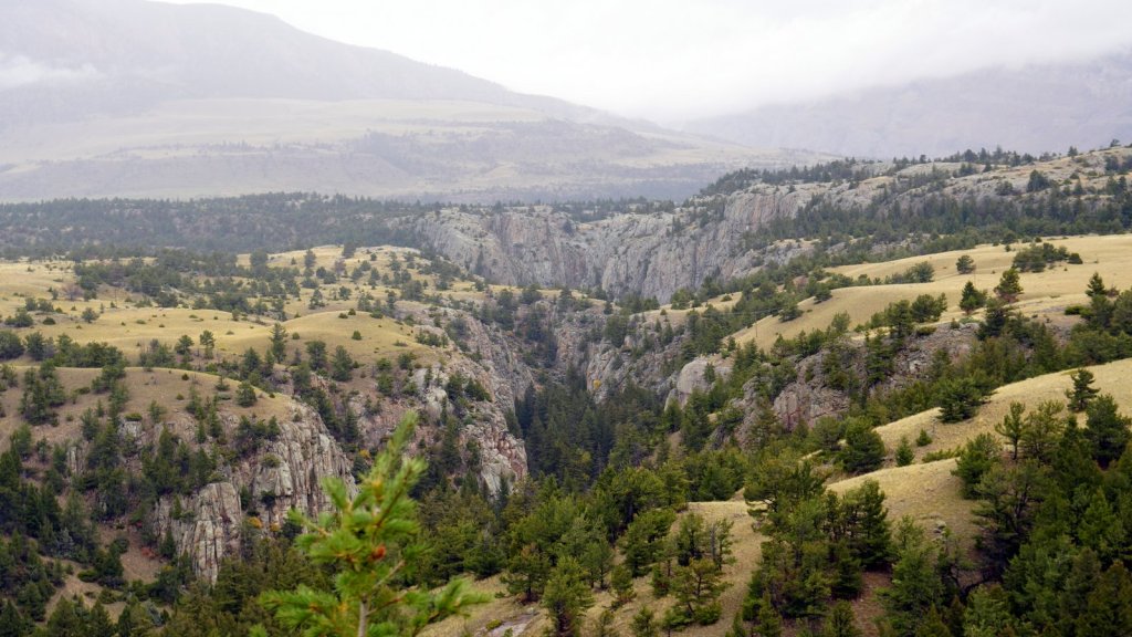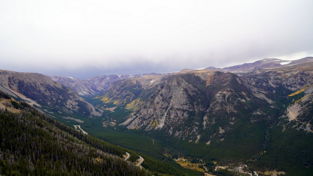 We followed Hwy 90 going east. This highway is the northern most Interstate across the US going from Boston to Seattle. It is busy and full of large trucks. Where there is a climbing section there is fortunately an overtake lane since our small 100 Hp engine has trouble getting up some of the steeper slopes. Based on recommendations from other travellers we met along the way, we turned off the highway at Columbus to go south to Red Lodge. This town is an accommodation town for visitors entering Yellowstone from the North east. However this entrance is closed because the road was washed out during a huge flood in June. The town itself had also some damage. After Red Lodge the Beartooth highway starts. This is a very scenic road climbing up the mountains towards Beartooth pass at 3338 m. From many point along the road you can look back down the valley and see how the road snakes up the mountain. On the other side of the pass you first stay a while above the 3000 m. The area is windswept and cold. No trees grow here. After a while you start to descend towards the closed (Northeast) park entrance. We found a secluded campsite at 2300 m on the Crazy creek with a view of Beartooth mountain.