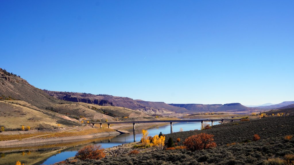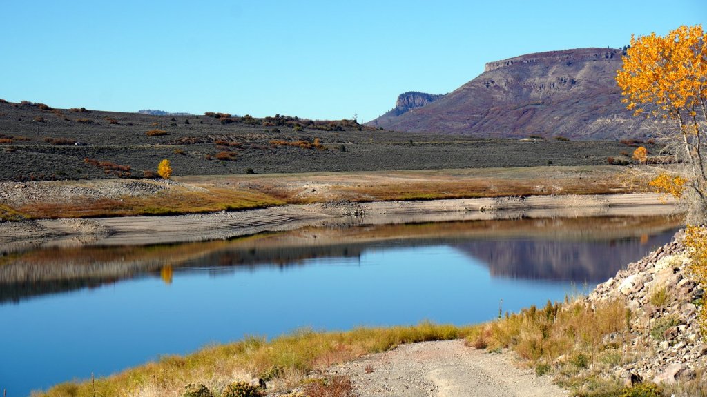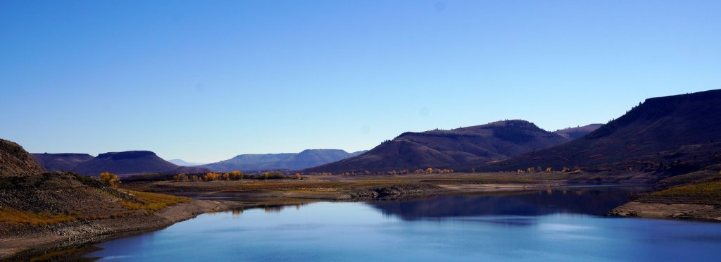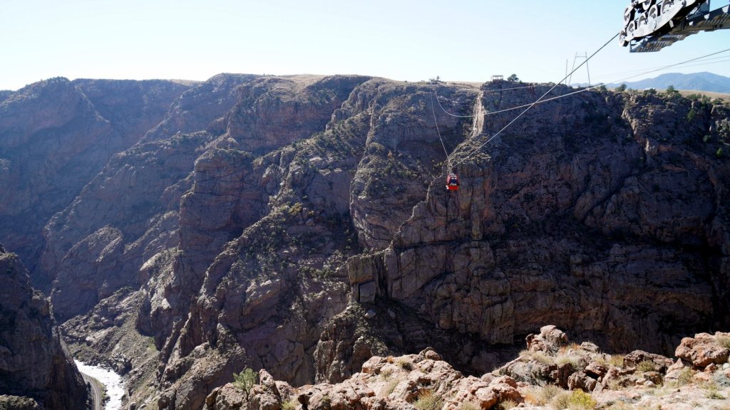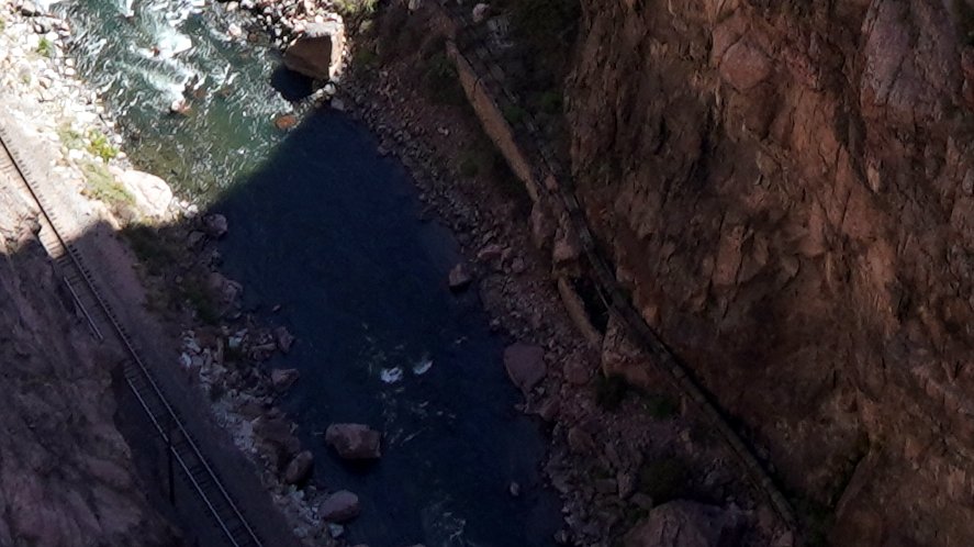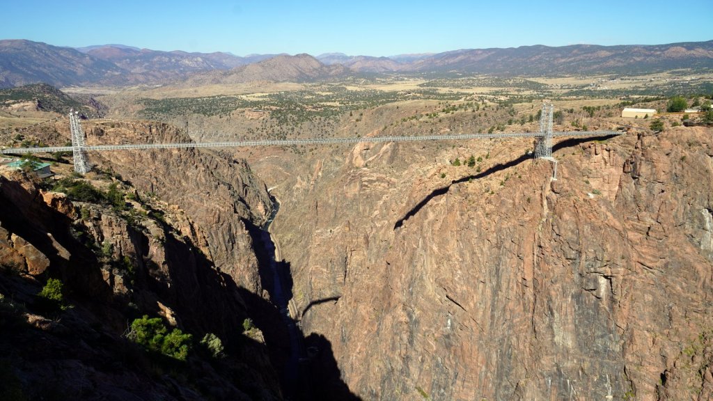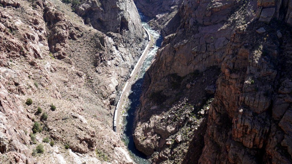 The next day we visited the hanging bridge over the gorge of the Arkansas river. It is a tourist attraction. In 1929 somebody saw the business potential and had the highest suspension bridge in the world built over the gorge to attract tourists. The bridge still stands and next to it is a gondola and zip line over the gorge. In the valley below on one side there is a train line (now only for tourists) and on the other a damaged wooden pipeline which was used to bring water to Canon city around 1900. After several gondola rides, crossing the suspension bridge and a Burger with Fries we drove on following the Arkansas river which winds its ways through the mountains to its headwaters. These headwaters are a series of lakes. Some of them are dammed. The water level is low because there was not much snowfall during the winter. We crossed the Monarch Pass (3441 m) going down to Gunnison where we camped just outside the town at a free recreational camp site. During the night the temperature dropped dramatically and it was 2 deg inside the camper in the morning. Fortunately we got the heater working again (it has been working on and off). The skies are clear on this side of the mountain. It still takes to 12 noon before you can take off your sweater. In the evening once the sun sets it cools off fast and sitting outside without a campfire is not pleasant.