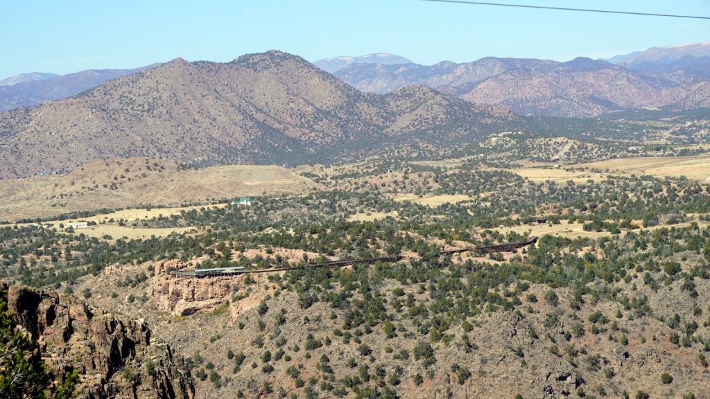 We were on the move again. It was first to Colorado Springs for an oil change at Jiffy lube. In Boulder nobody wanted to do it because we had our own oil filter and they can only use their own parts (Liability). It was no problem here. From there, it is not much further to the Royal Gorge Bridge and Park where we camped on a park campground with a view down into the valley. The area is becoming dryer and the trees shorter. In between the pines there are very old juniper trees.