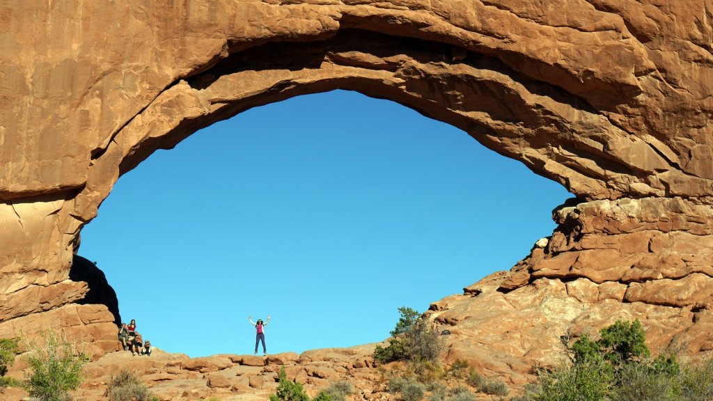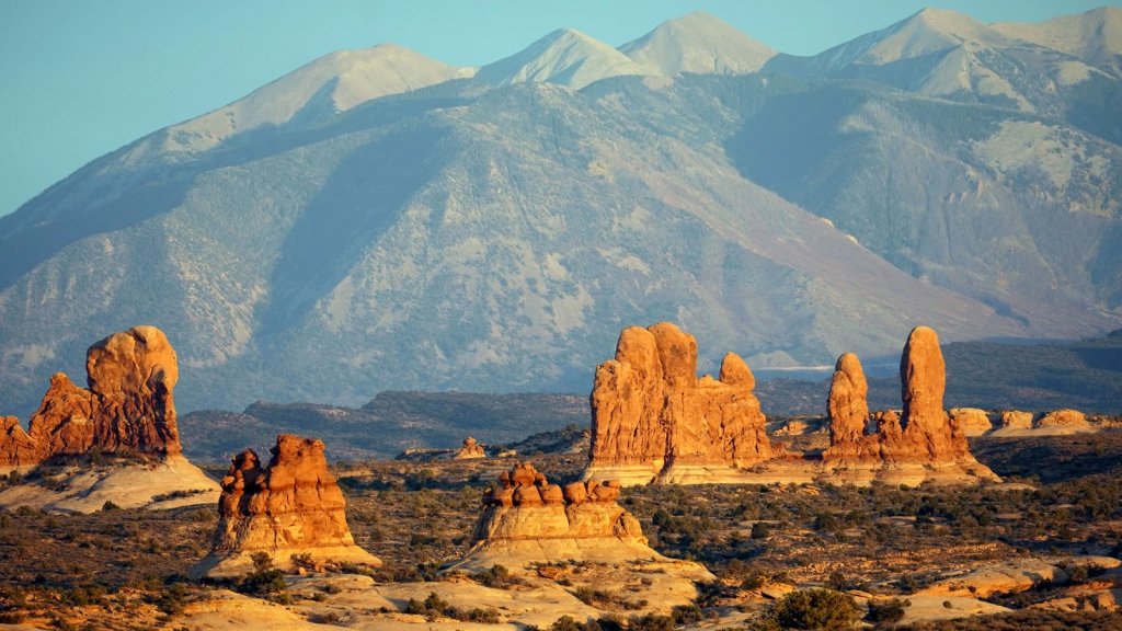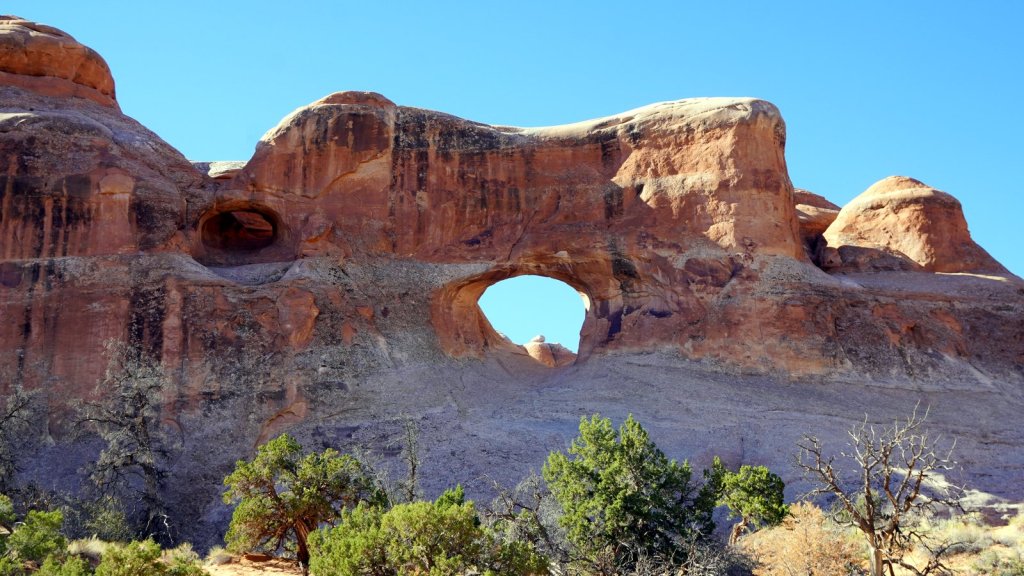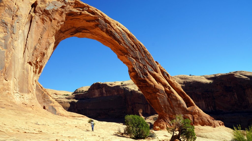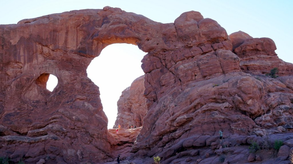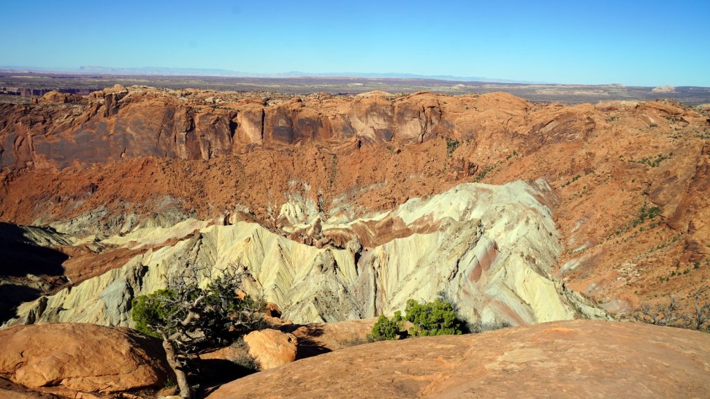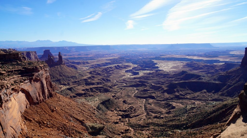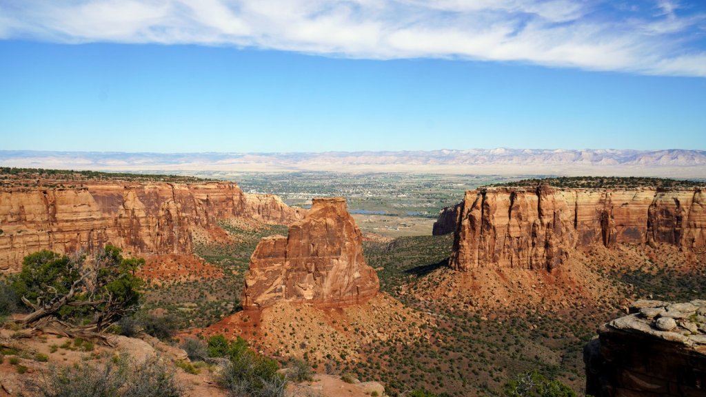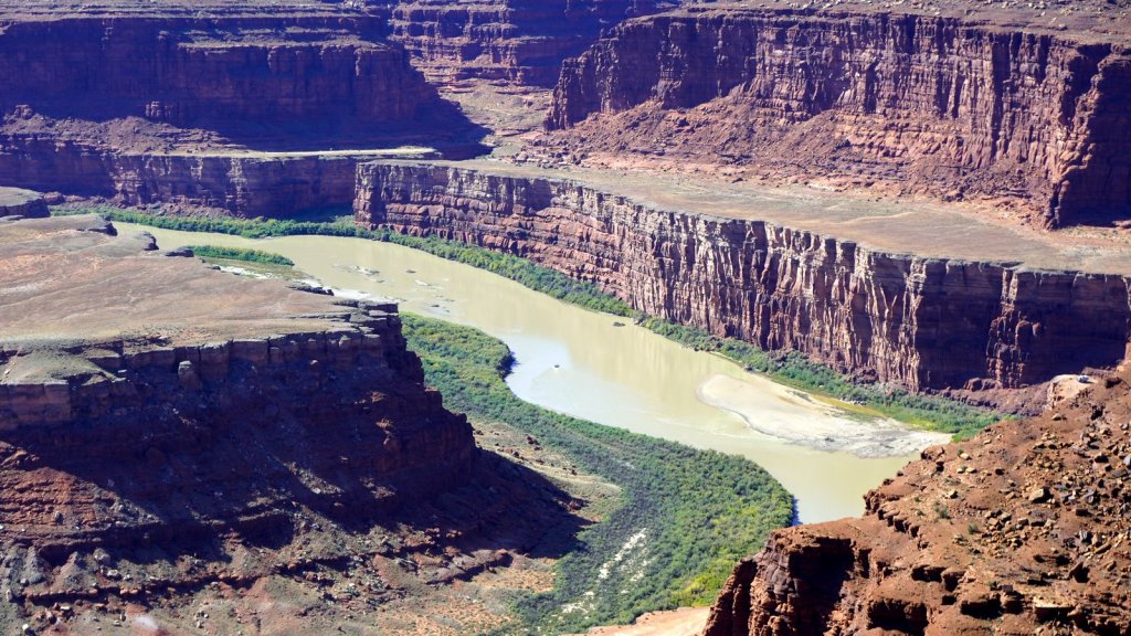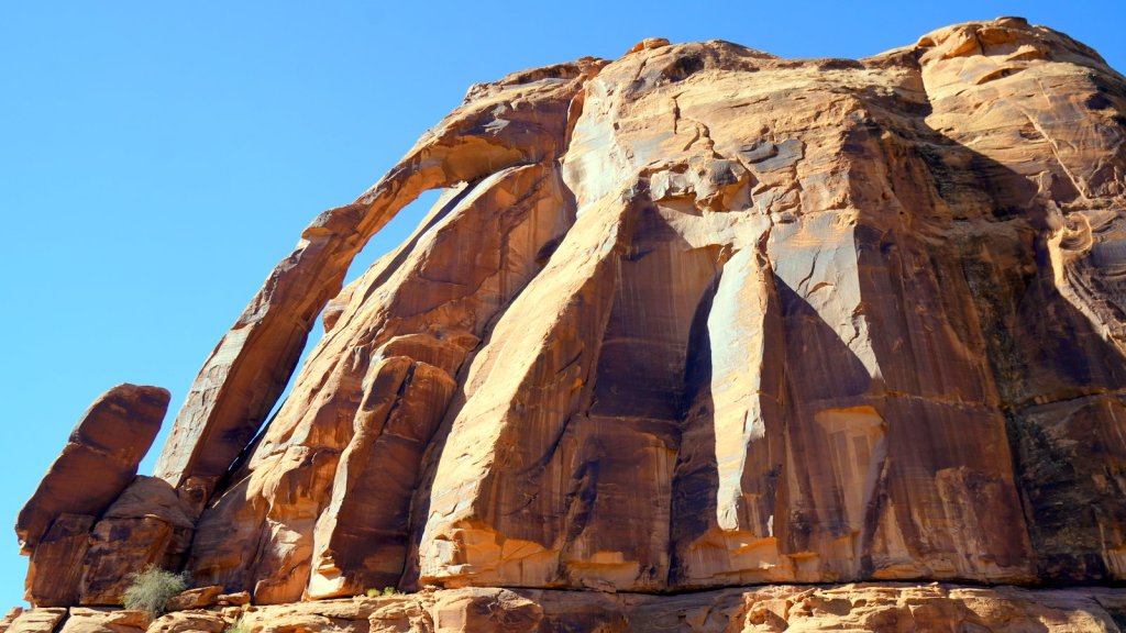 In these last few days we visited several State and National parks. The parks are all along the canyons made by the Colorado and Green river. First the Colorado National monument. Here we spent half a day driving around the rim of the mesa (table mountain) looking down into the valley below. The road twisted and turned along the valley rim and the sights are breathtaking. It was our first taste of this rugged dry red landscape. From here we followed the Colorado river as it cut its way through the country side on Scenic Hwy 128. Instead of looking down from the mountain into the red coloured valley we were driving in it! At the so-called “Fisher Towers” we stopped for lunch. The high sandstone towers are a favourite for climbers. There is a campsite here but with only 5 places and it had already filled up. We drove further following the river and passed many campsites on this road. Most of them appeared full. When reaching Moab, we decided to drive all the way up the mountain to the park campsite at the end of the Arches NP. Unfortunately, it was full (as expected) but we could reserve a site with the camp host for the next day. We did this and drove back to Moab and found, in the dark, a campsite just outside town.