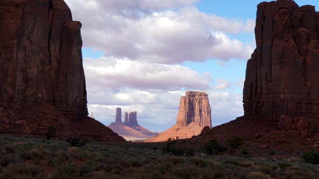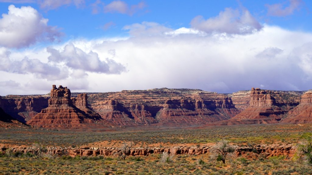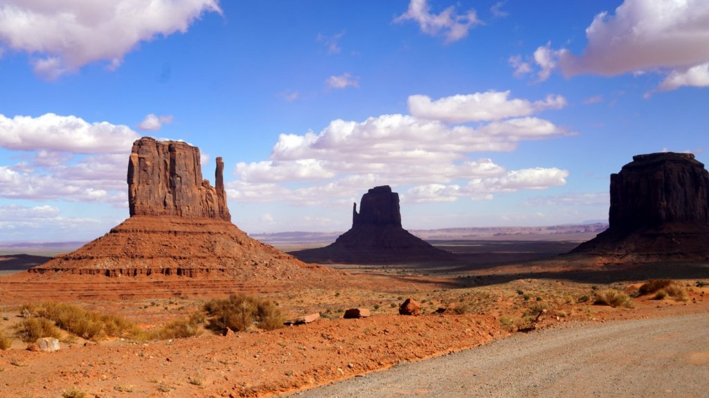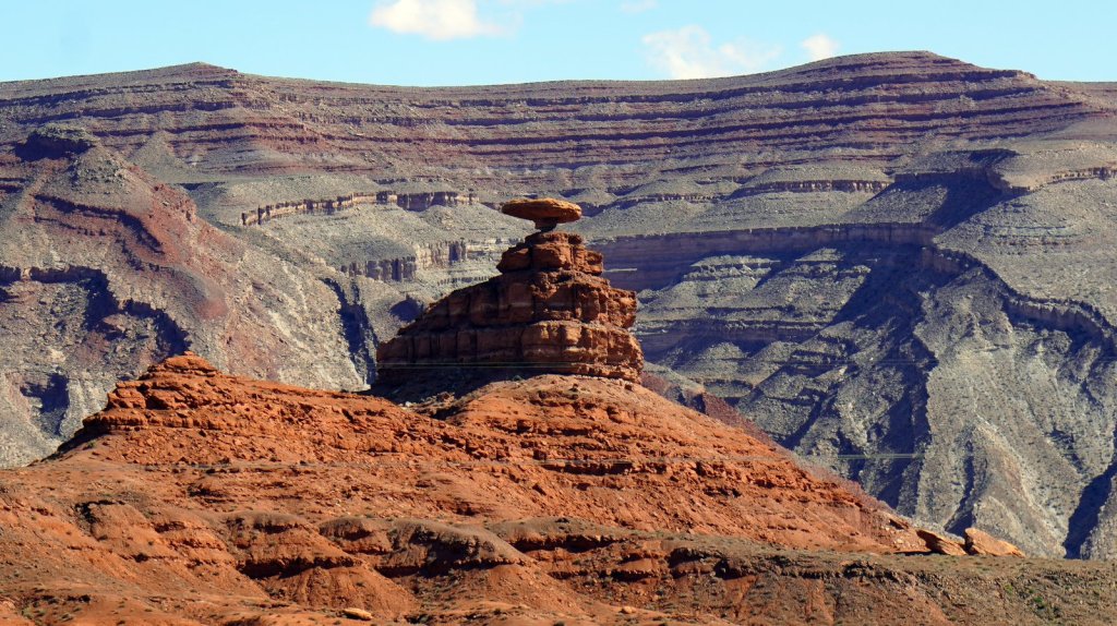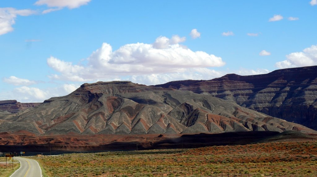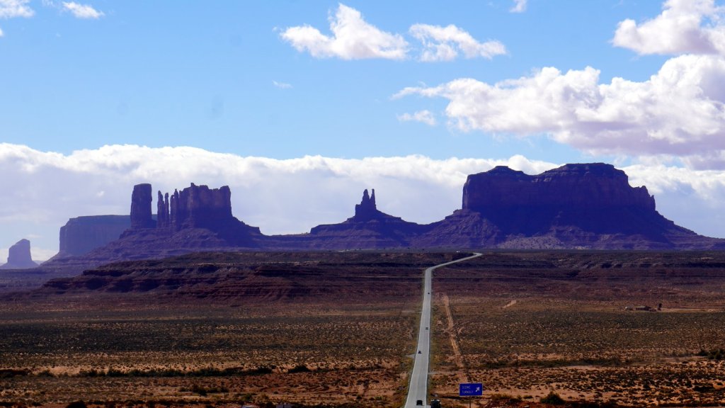 Fortunately it had not rained too much to make the sand/clay/rock roads impassable. Just a few kilometres outside the camp a small gravel road called “Valley of the Gods” starts. It is a very beautiful scenic track through a valley in-between small and large eroded table mountains. There are lots of open camping spots along the way. In many places the track is narrow and steep so you need a car with high clearance and a short overhang. We were not sure if we could make it to the end but we did. From the “Valley of the Gods” it is only a short drive to the major attraction in the area “Monument Valley” a Navajo tribal park. In this park the sand road is wide and bumpy. It does not have narrow steep sections so tourist can make the 17 miles loop in their own car. The red coloured table mountains are the ones we are all familiar with from the cowboy movies or various commercials. The table mountains are much larger than the ones in the Valley of the Gods but there are many more people driving around so your sense of adventure disappears. In the evening we camped a bit further up the road at the Navajo National Monument. The campsite is on top of a mountain at 2200 m. Snow is on the ground so we are expecting another cold night. Fortunately the heater is working well and tomorrow morning before getting up Jamaliah will switch it on again.
