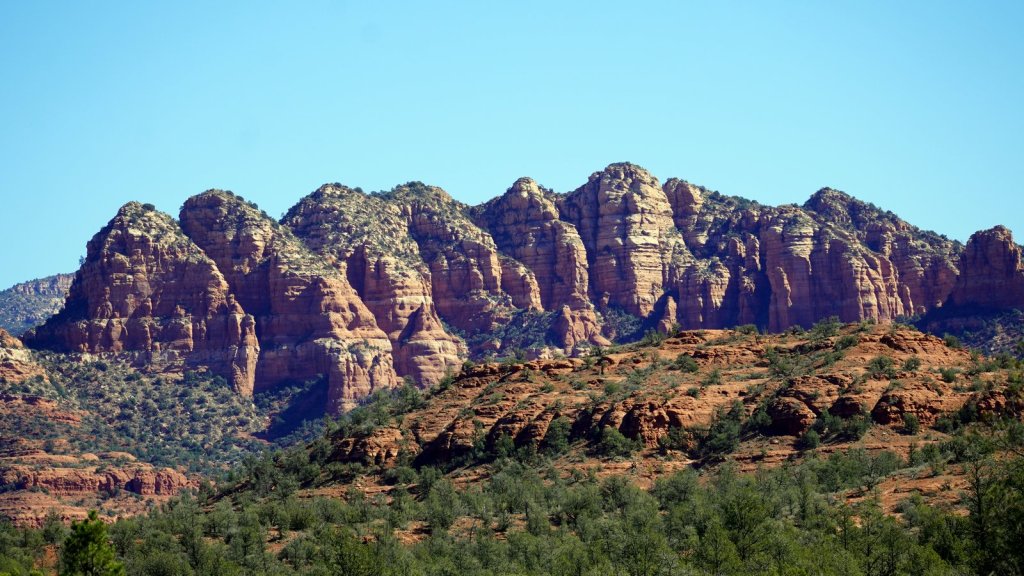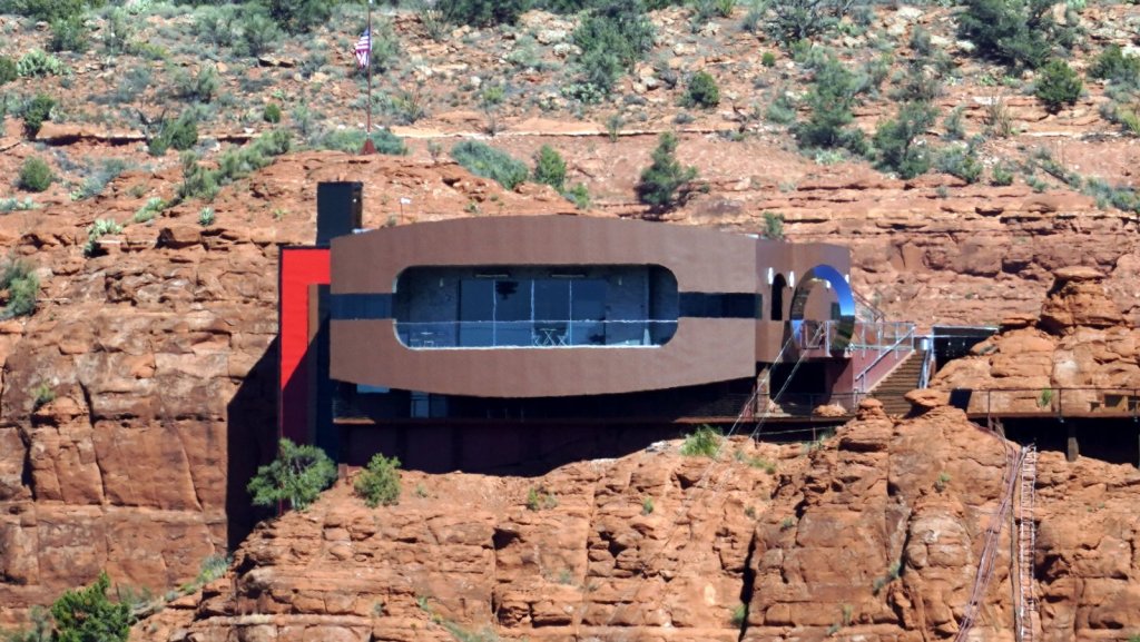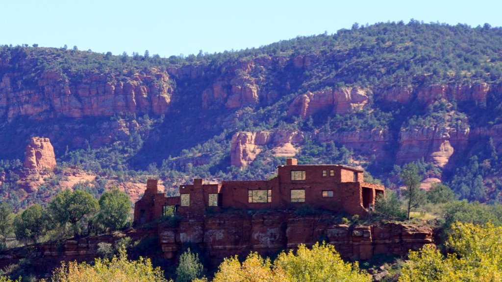 Sedona is an Oasis if you are driving South in Arizona. We followed the Oak Canyon on Hwy 86A down to the town. Along the way there were many cars parked for walks in the mountains around town. It is a modern tourist town with hiking in the summer and skiing in de winter. One of the parks we wanted to visit was not busy but the day rate is too expensive to justify paying for just an hour or so that we want to spend there. Instead we drove to the other side of town and went to the Red Rock state park. It is a small park with well maintained short walking trails. It was donated by a well-to-do local family. They had a lovely house built on one of the red rock hills in 1948 but actually never lived in it. It has been empty ever since.
