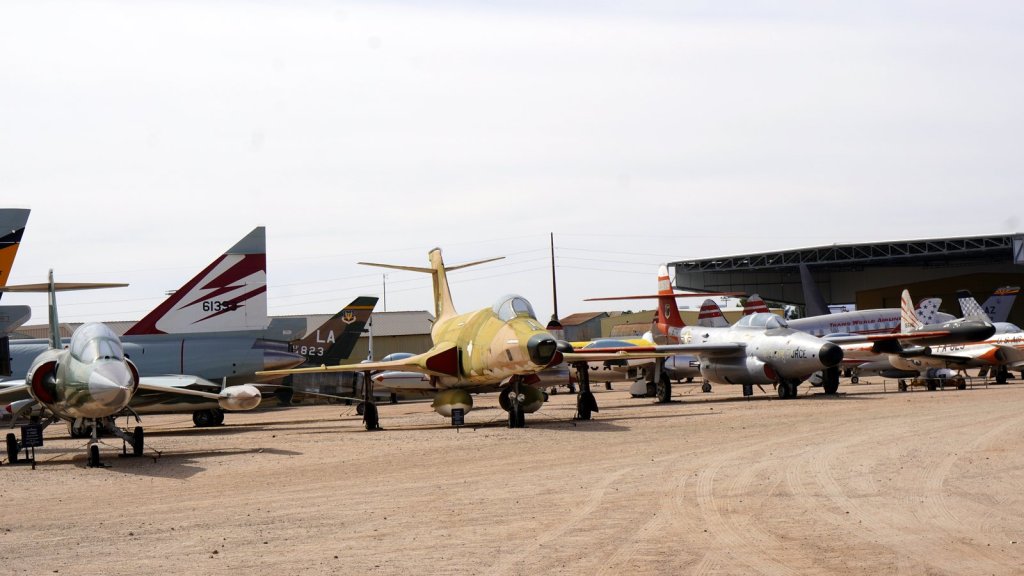 In Tucson we spent a lovely 2 days at the house of David and Sam. We had met this elderly couple back in Canada. They drive a large RV towing a car. We gave them a lift to a small campsite along at Boya Lake where they were thinking of camping but not sure if their camper can turn around. David had been travelling all over the world. He even slept in the Fondelpark (Amsterdam) in 1972 when Rudy was doing the same but they did not meet each other (so they think). Sam comes from Thailand and has been living in the US for over 50 years. Needless to say that Jamaliah and her had also several stories to share. On Sunday they took us out to the nearby Air force base. There, on the “Bone Yard” are hundreds of large military planes stored. They are preserved as much as possible helped by the dry climate. At the site there is also a large military airplane museum. We spent over 3 hours wandering around, outside in the sun and inside in the huge halls admiring many WWII planes but also more modern planes and helicopters. In the evening they took us out for dinner in a great Italian restaurant.