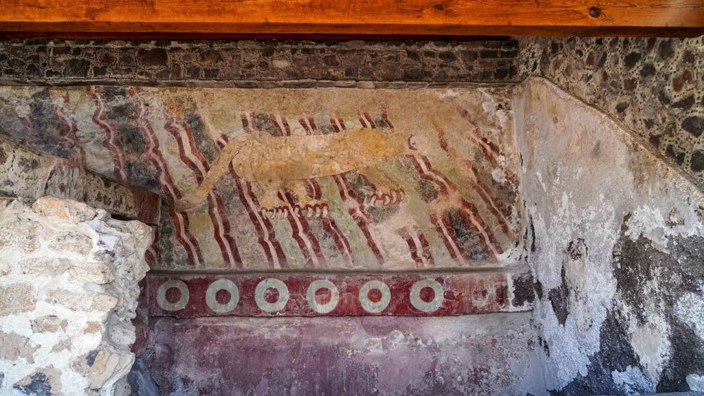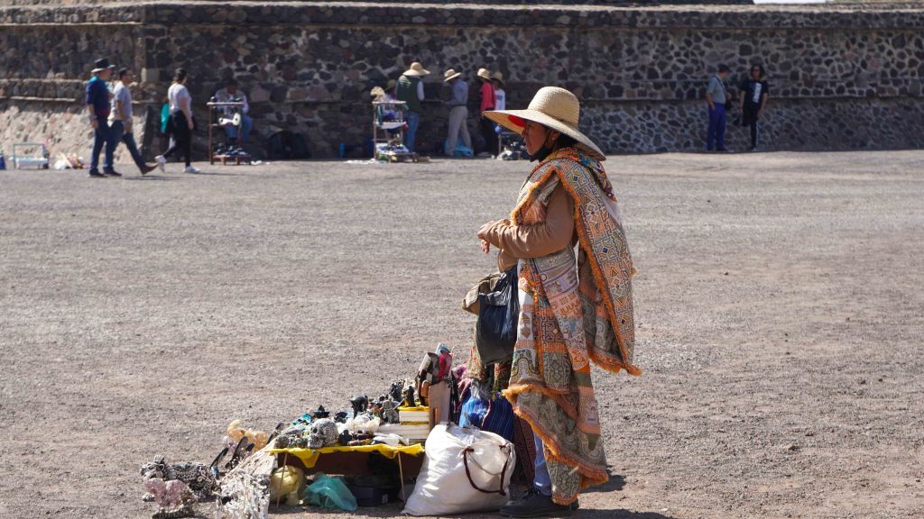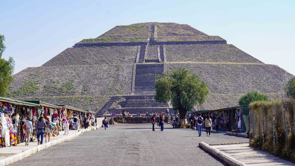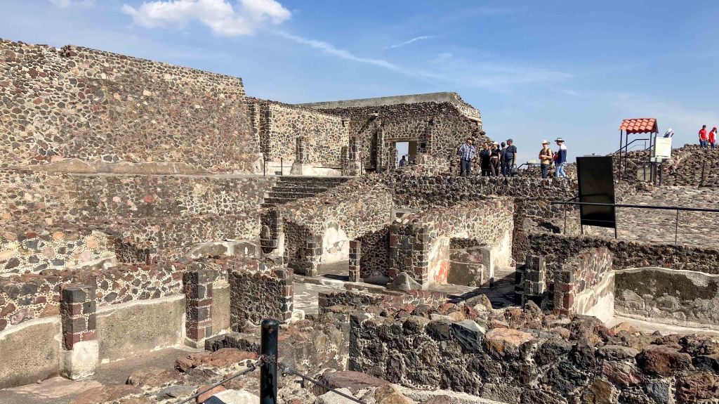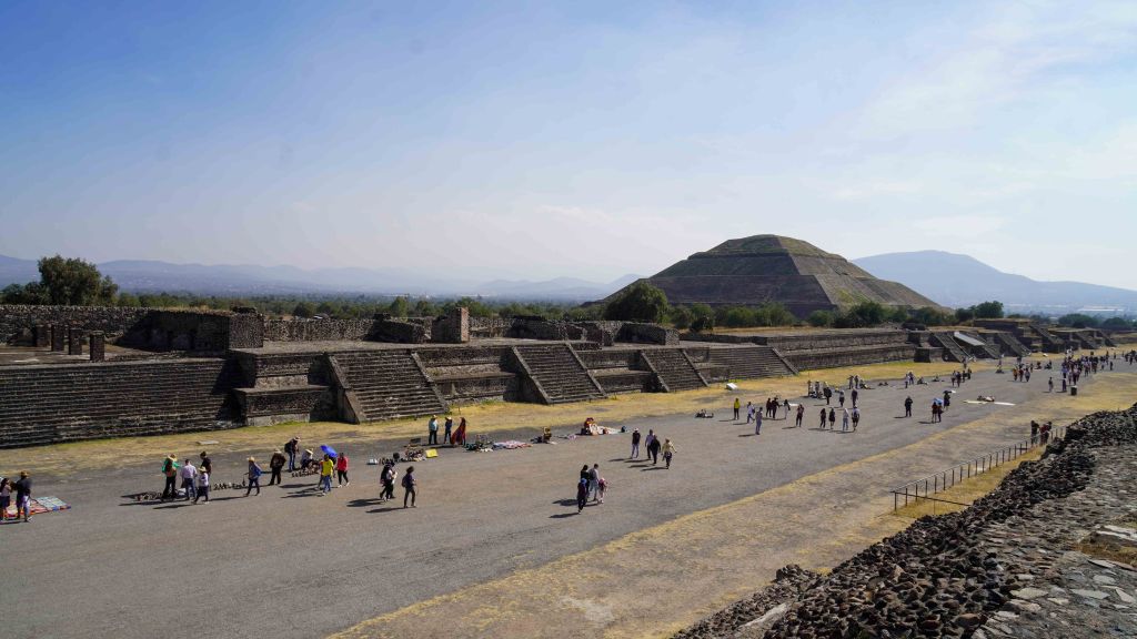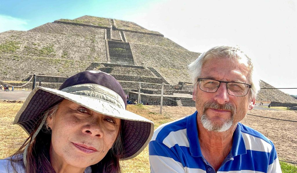 We pulled ourselves together and made it to the ruins of Teotihuacan some 3 km from our campsite. An Uber taxi bought us there so we had enough energy to walk around the large Temple of the Sun (third largest in the world at 70 m high) and over the long wide road to the Temple of the moon. The large complex was competed in AD 150 but the city/state collapsed in the 8th century most likely due to internal conflicts. Because the complex is so large (500 x 1500 m) with wide cobbled stone roads it does not feel busy. Also, in the complex itself there is no sale of food and water, just many locals selling trinkets on a mat in front of them. They are not aggressive sellers like you often have in other tourist sites. You are no longer allowed to climb the 248 steps to the top of the pyramid. That was fine with us, we did not have the energy anyway. The coughing of the last 3 -7 days had reduced our lung capacity and taken its toll. In the end only Jamaliah went into the museum. We will do a better tour when we come back in February to pick up the camper.