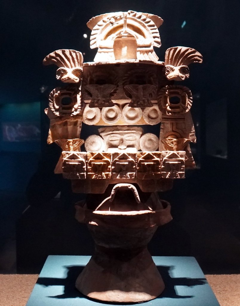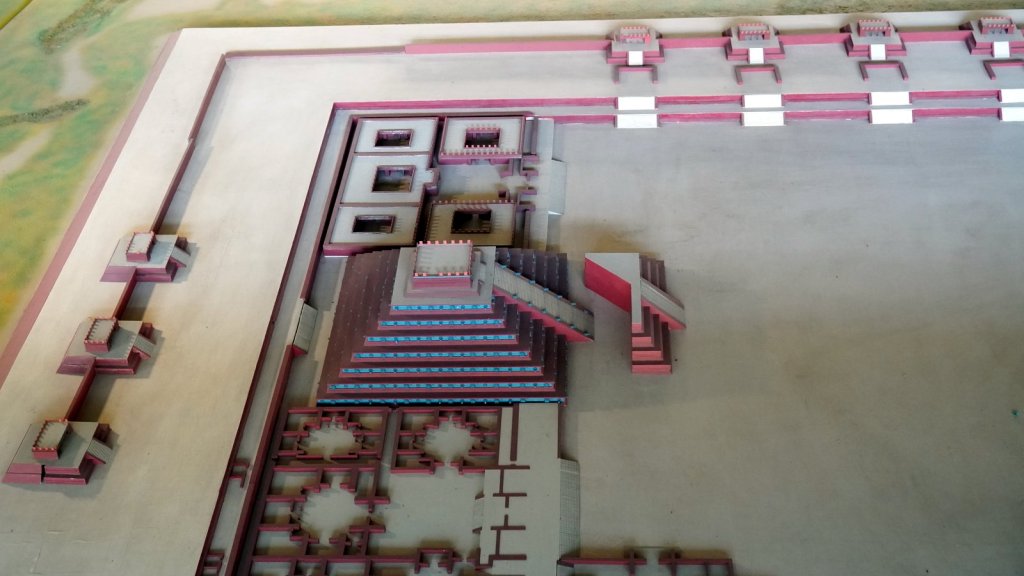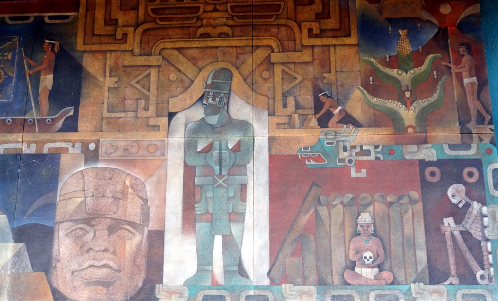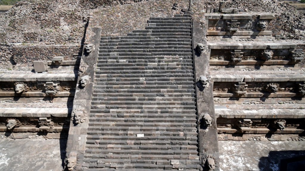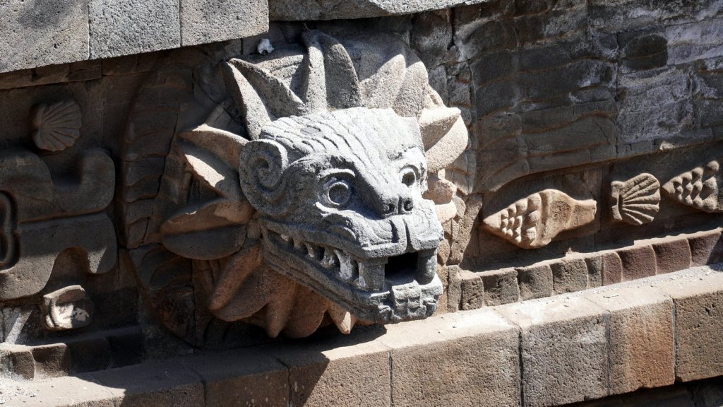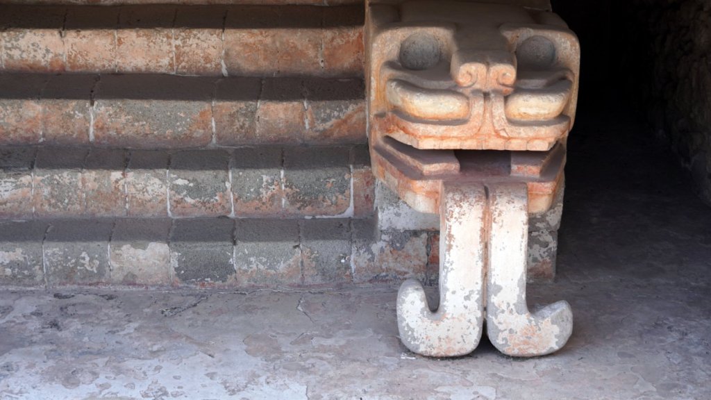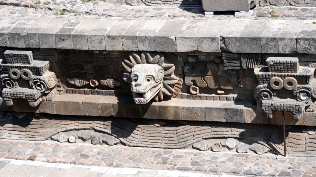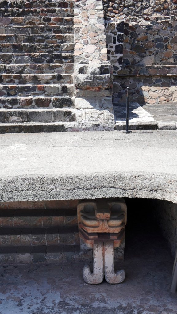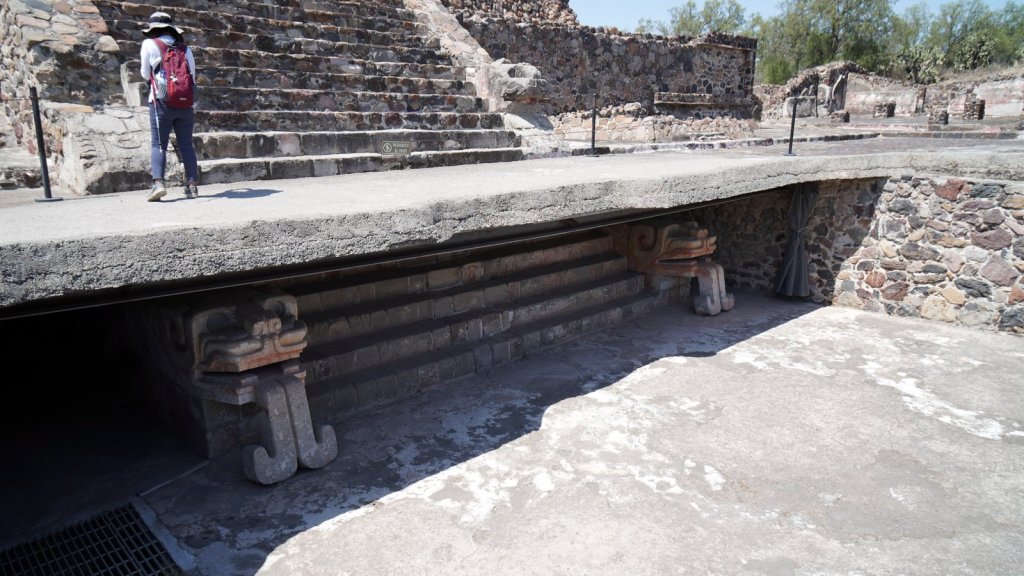 Mina, the camping owner, picked us up at the airport when we arrived in the evening and drove us to Teotihuacán (47 km) where Passepartout was waiting for us. The camper battery was flat but we connected it to the mains and went straight to bed. The next morning we repacked everything, had the clothes washed at a nearby launderette, started the engine and took the camper to the car wash. Camper was really dirty. The first time we were here in December Rudy was not feeling well so we did not fully explore the large pyramid complex, Teotihuacan. Despite that Jamaliah was in pain and walking with a walking stick we explored the other half of the temple remains along the 5km long avenue of the dead. This time we noticed that the many pyramid shaped structures had many layers. Each ruler added a layer to the complex, covering up the older sculptures and wall paintings. At various places the archaeologist had pealed back the layers and we could walk through a cross section. At the end of the avenue is the large Pyramid of the Feathered Serpent with La Ciudadele (the citadel) as the highest structure dating back to 250 AD. A more recent overbuild was partially removed revealing many sculptures left and right along the stairway to the top. The complex was dedicated to the water god as can be seen by the waves and shell decoration along the different levels.