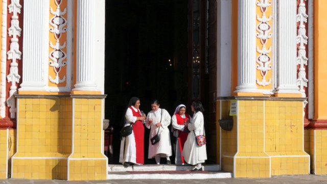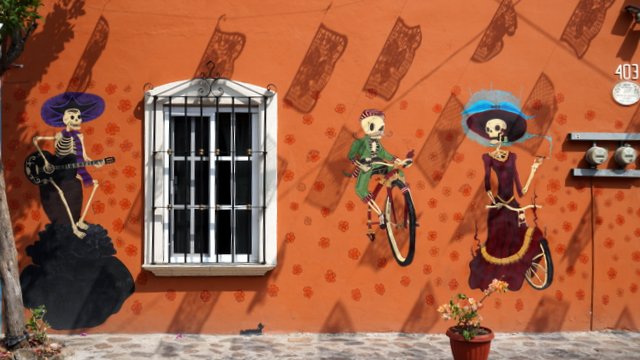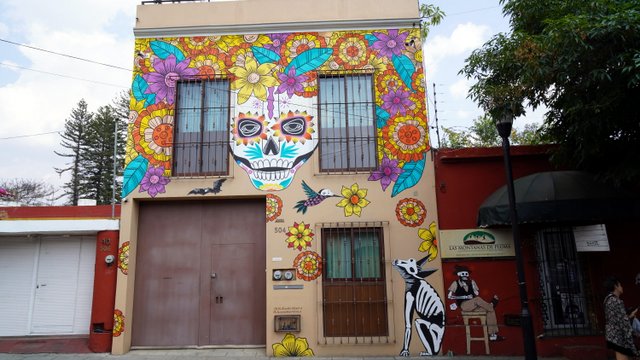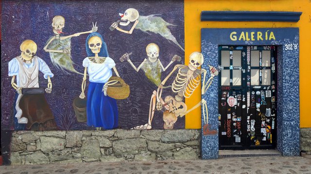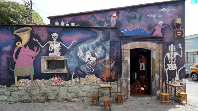 On our second day we wandered the narrow streets of the old city. It is a World Unesco Historical site so the old street structure and houses have been preserved and shop fronts are modest. Beside the Church and Museum we visited is in an area where, over the past years, local artists have expressed themselves in Murals. It is not clear to me why most of the figures are skeletons. Close to our campsite there is a lovely small park around a church which has an over 2000 year old tree. It is claimed that this is the widest tree in the world. You could not stand close to the tree (it is fenced off) so the pictures may not give the right impression. In the area around the church you see more of these type of old trees. It must once have been an impressive grove. Glad that a few still survived the human on-slaughter.