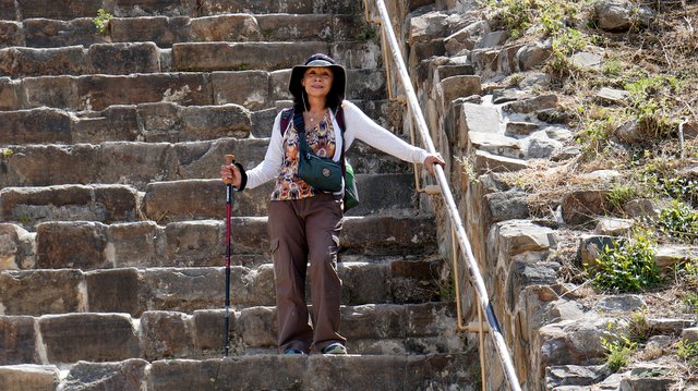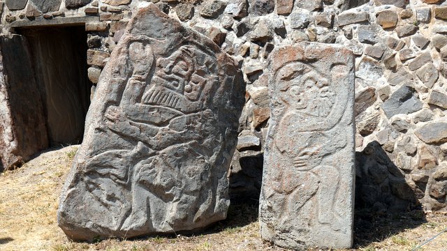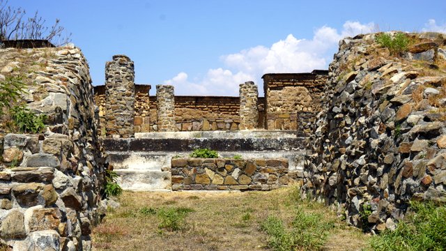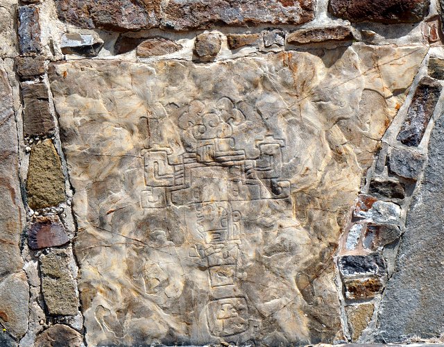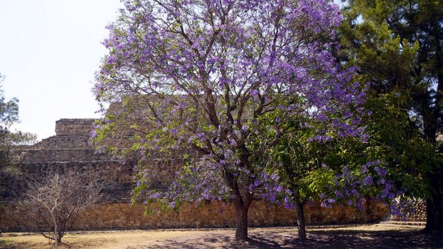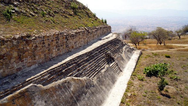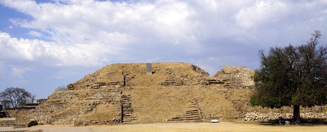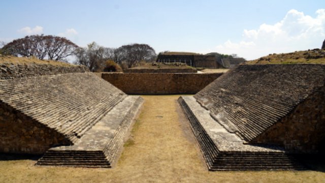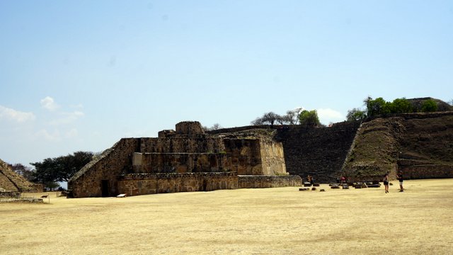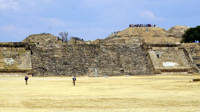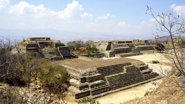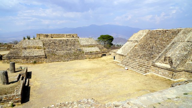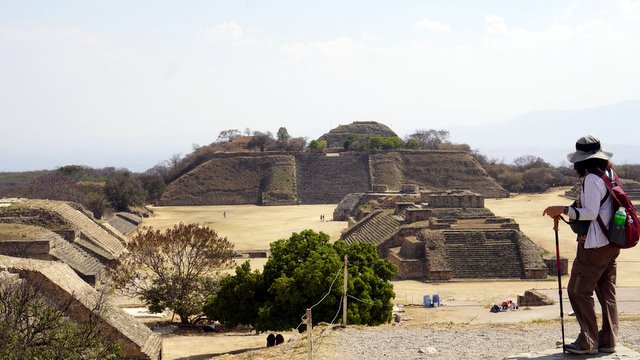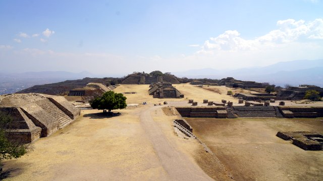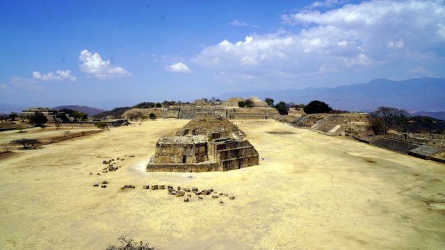 The historical site on top Monte Alban lies some 400 m above the town. The mountain top has been flattened and over 1000 years a large temple complex was built. The structures have been rebuild and expanded over the centuries but from what we could see it does not have such an “onion” overgrowth like the temples we have see in Mexico City and Cholula. Also there were houses for the elite with graves inside/underneath them. In 1932 one of these grave revealed a large collection of objects from the 14th century. The grave itself was a lot older (Zapotec, 700 AD) but reused by a later civilization (Mixtec).