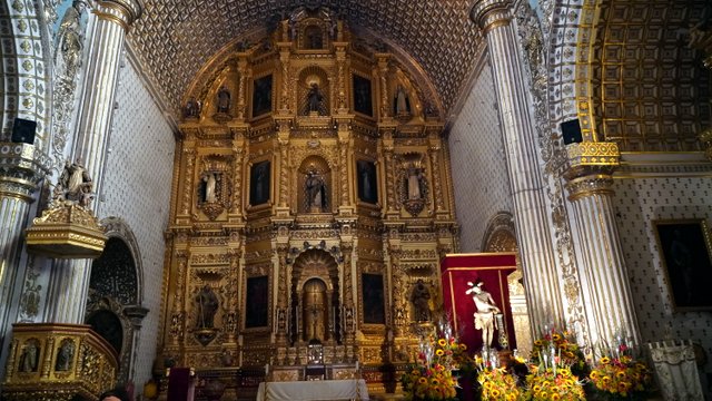 There are 2 main reasons for visiting Oaxaca. One is the extensive temple/pyramid complex (Monte Alban) on a flatted hill top just outside of town. The other is the old city centre which has a Dominican monastery from 1570 with a large church. The monastery itself houses an impressive collection of artefacts found in one of the tombs when excavating the ruins on Monte Alban.