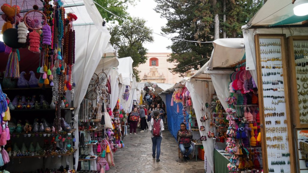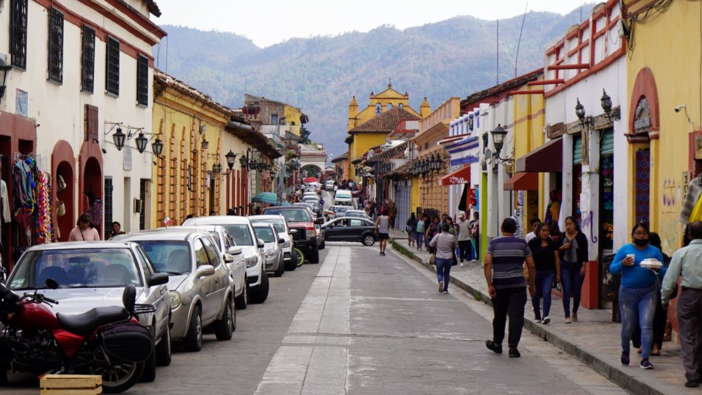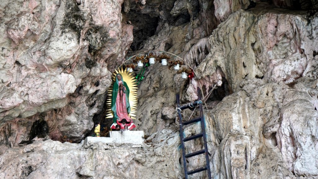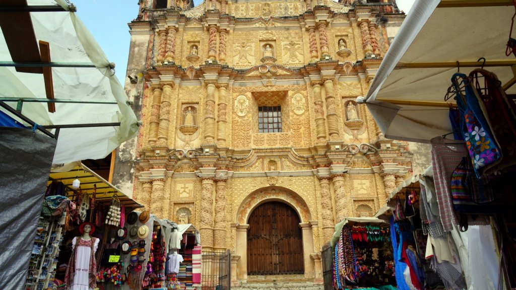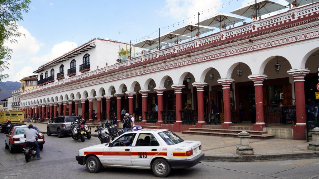 From Chiapas de Corzo we started the 41 km climb up to 2100 m from 450 m. The town of San Christobal de las Casas lies just over the top of the rim in a large valley. It is one of the most native towns in Mexico. We did expect to see more people dressed in traditional clothing but I guess modernisation has also arrived here. This was particularly clear when you see almost everybody walking around with a smart phone. We found a hotel with an inner courtyard where we could park the camper and rent a room. It is a lot cooler at this height which made wandering the narrow cobbled stone streets a lot more enjoyable. The town was started in 1545. The buildings around the main plaza however did not feel that old. Maybe this was due to the earthquakes the town had suffered over the years and the buildings had not been restored in the original style. Still we spent some present hours wandering the streets, sitting in the different plaza’s and enjoying the street food. I don’t know why but we could only could find one of the churches open.