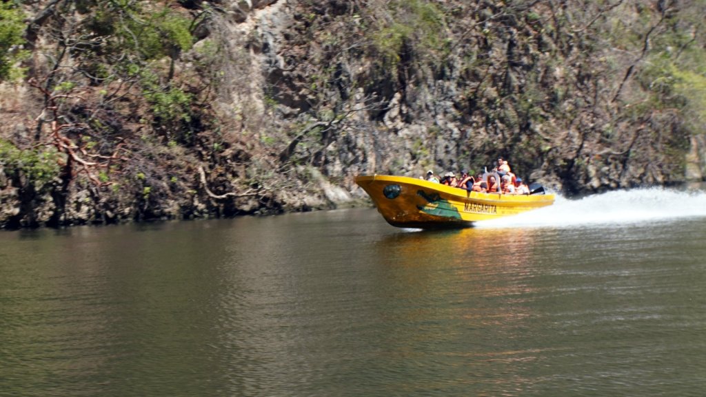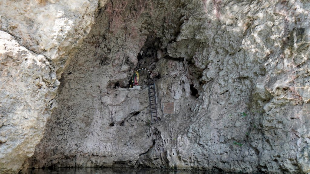 The following day we took the cruise up the river through the gorge all the way to the power dam which actually raised the level of the river so that the boats could make the trip. Along the way we saw several flocks of birds skimming the water surface getting out of the way of the boat. On the side of the river the guide showed us some crocodiles and at one point monkeys in the trees. Although the rock is limestone there were not many places with “dripping rock” features.