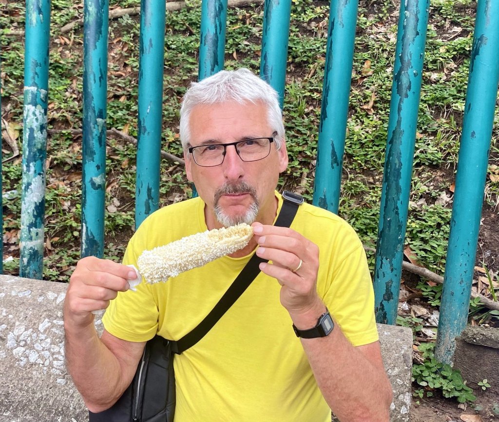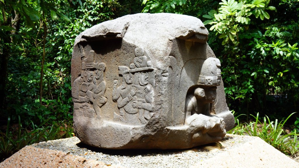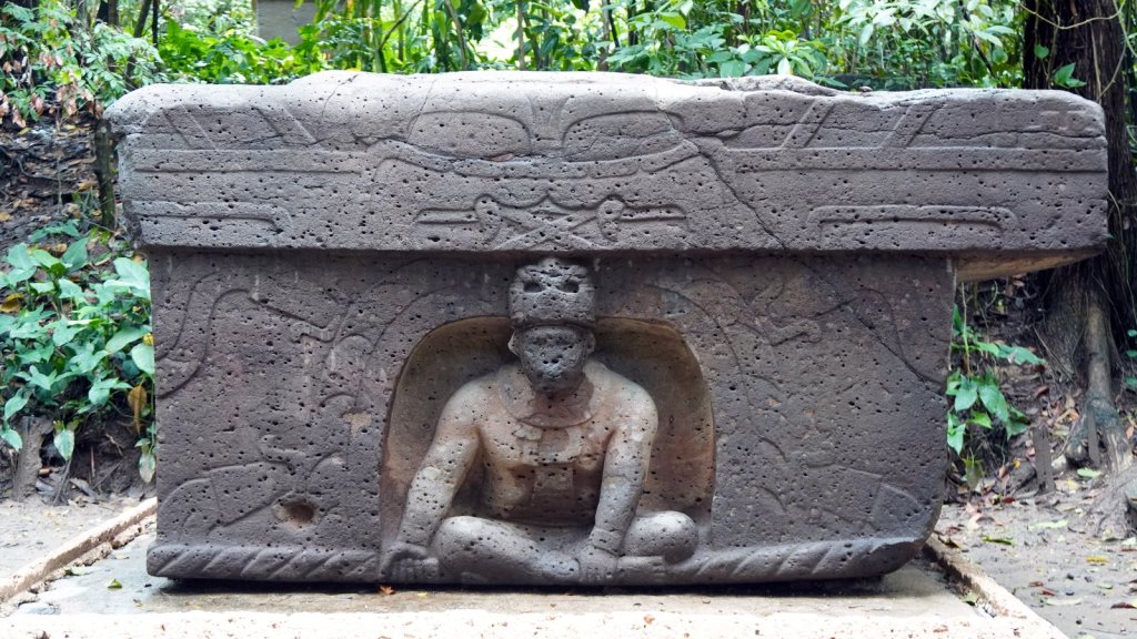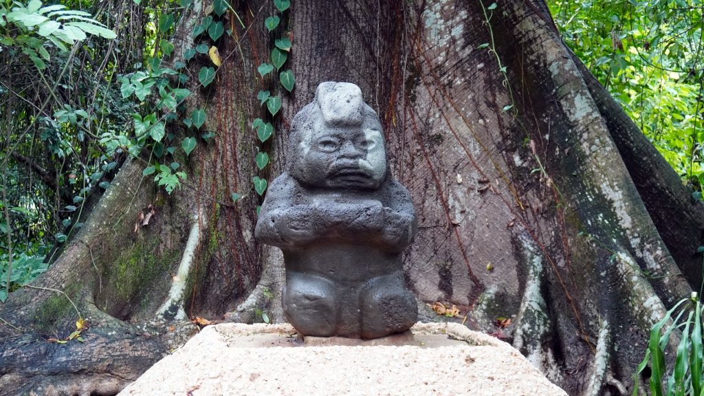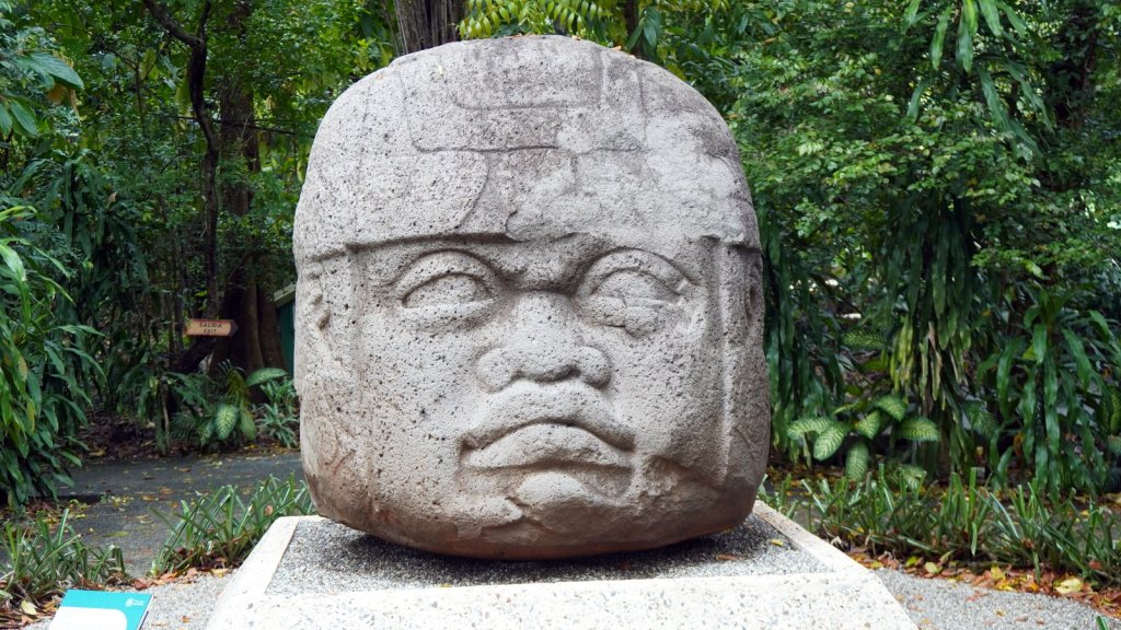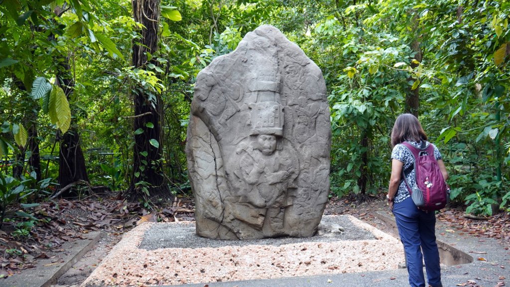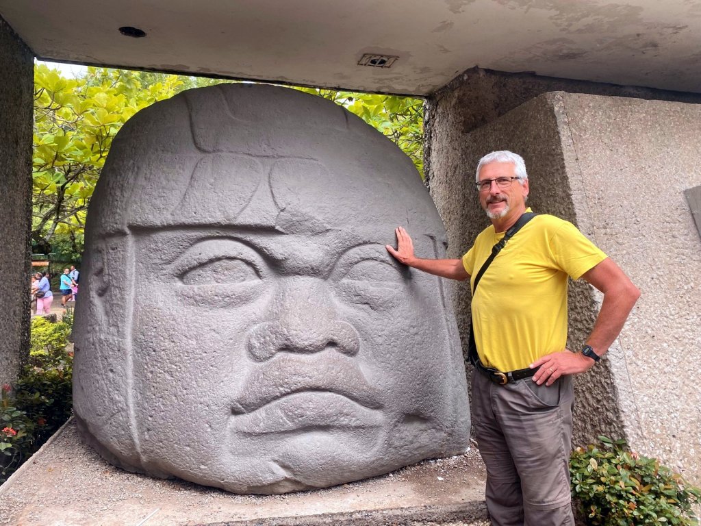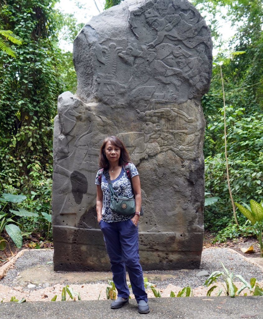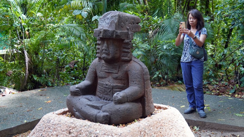 While waiting for the VW workshop to open up, we walked a bit around the hotel and had our evening meals on small stalls along the road. Next to the hotel is also a more upmarket cafeteria which we also visited twice. Luckily the hotel had good internet that much of the evenings was spent watching, via VPN the Dutch TV for Rudy and for Jamaliah different British programs. On Monday we took the Uber-taxi to Parque-Museo La Venta. This is a park in a tropical setting with many large old trees. There are some local animals in cages but the main attraction are the many statues which have been salvaged from La Venta. This was an Olmec settlement (700 – 300 BC) and is one of the oldest in Mexico. They influenced many cultures that followed.