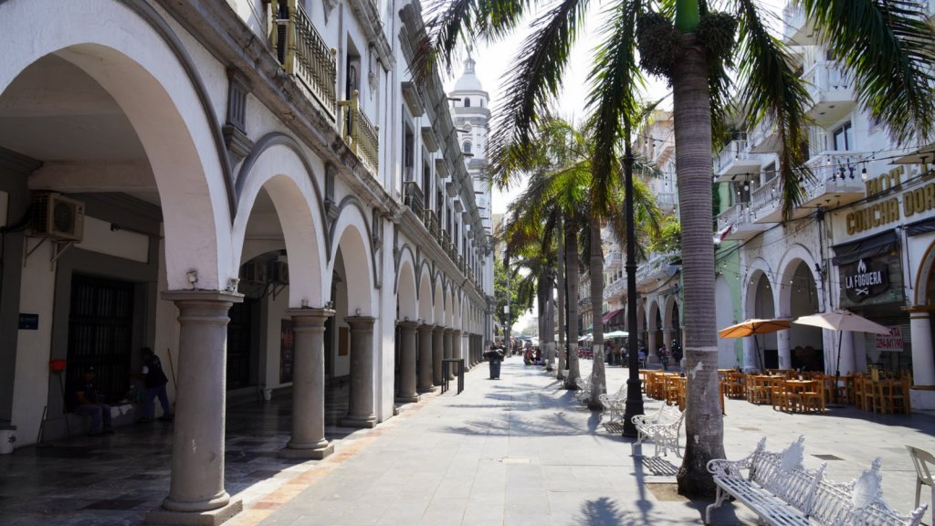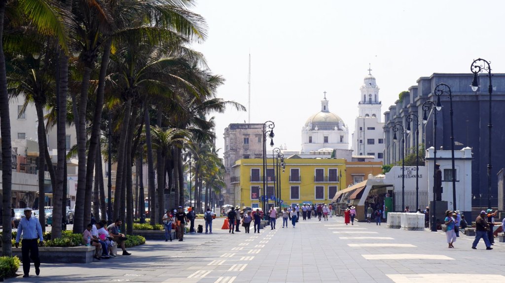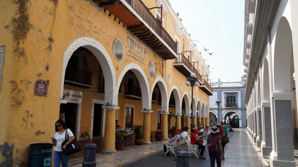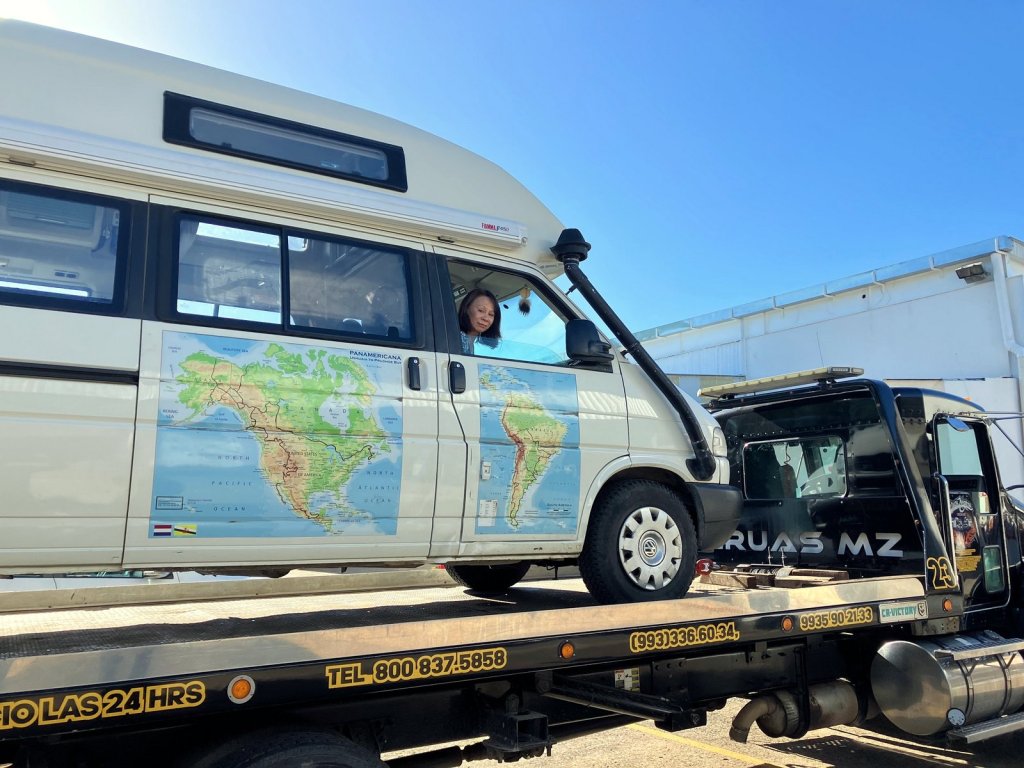 The tow truck arrived at 8:30 in the morning and the camper was loaded. There was only 1 passenger seat in the truck, so Jamaliah sat the whole trip inside the camper. When there were road checks she made sure they did not see her. Her high position allowed her to take some landscape pictures along the way. Finally after a more or less nonstop drive of 9 hours we arrived at the container storage site in Veracruz just in time before they closed the gate. The base plan was to come the next day to reorganise the luggage in sea freight and air freight. The container yard is however far out of town. Jamaliah went immediately to work to pack everything for the airfreight in the 2 suitcases we had while Rudy went on the roof to remove the air ventilator so that the camper would fit into the container. We took a taxi into town.