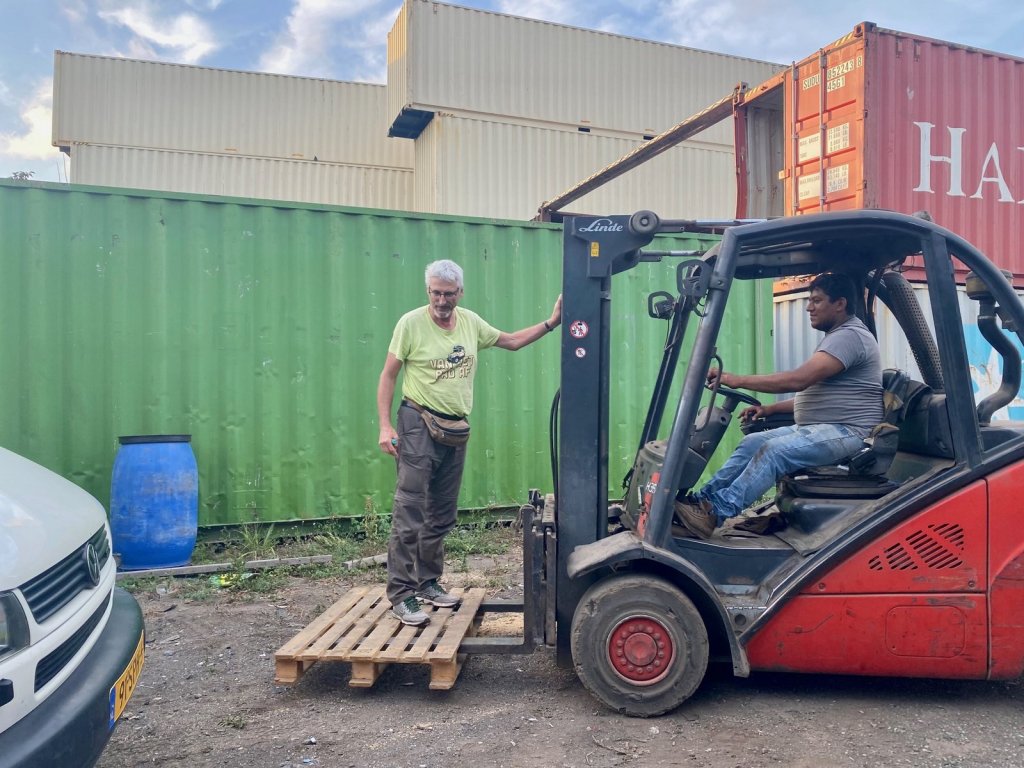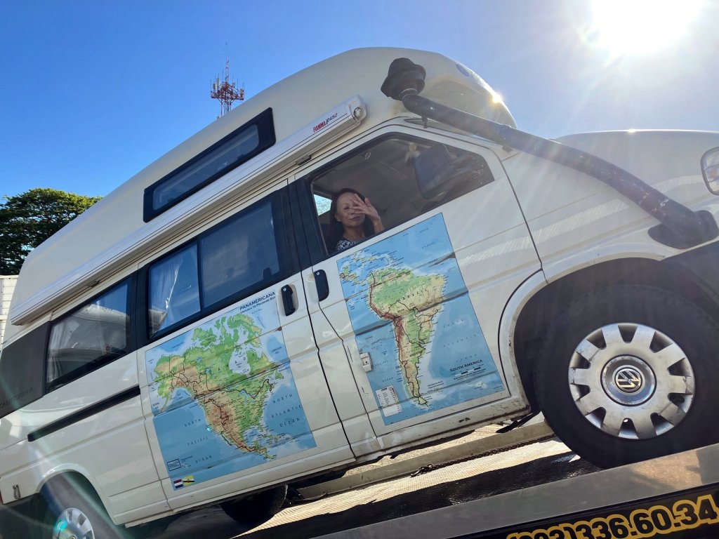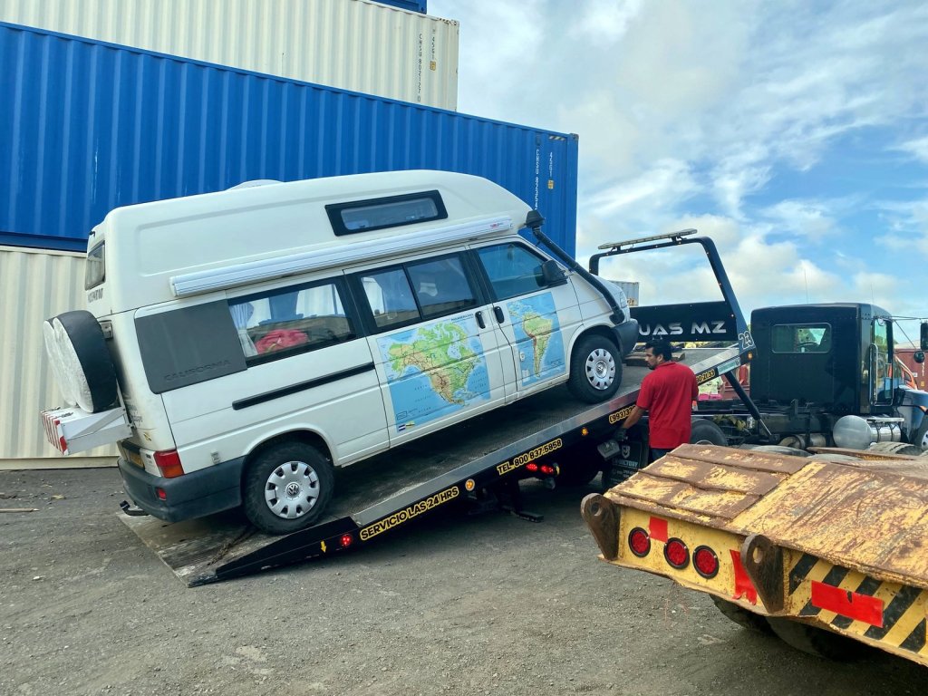 All of Wednesday was used to find a tow truck and arrange for a container in which the camper could fit. Fortunately our agent had a large, high, 40 ft container available and 2 other packages to go in it (a sports car and 2 motor bikes). This then split the cost. Transporting the camper on a tow truck over 486 km was however not cheap (Euro 1260). But we did not want to leave our camper behind after he had brought us successfully around the world in 180,000 km since 2014 (with a few illnesses in between).