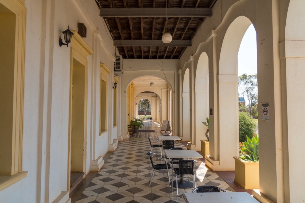 So, the first night camping was at New Norcia. Some 126 km north of Perth. We arrived just before dark and parked on a parking lot next to the roadhouse and in front of a historical building of the Monastery which is now use as a group accommodation centre. The whole village is made up of the monastery complex. It started in 1847 as a Benedictine mission with schools for First Nation boys and girls as well as orphans. The parents lived in cottages on the estate and worked for the mission in the first years. Over the years the (boarding) schools expanded and more and more first nation children were (forcefully) brought to the school. This integration process continued till mid 70’s. The Catholic College closed in 1991. The buildings are now a tourist attraction; however, the main monastery still houses some 7 monks, and you can join them in meditation.