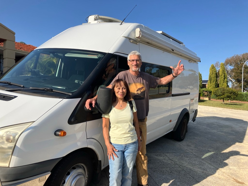 We quickly dumped our belongings in our given bedroom in Carel’s beautiful suburban house. Close by is a park where we went for a stroll to stretch the legs. Jamaliah has cramp in her leg because of her hernia and Rudy’s hip is continuously causing him trouble. We walked around like an old couple. Maybe that is what we are. The first encounter with the Australian outdoor life was relaxing. Many unknown trees and birds in the park. We also saw FREE gas barbecues and people using them for their evening meal. We spent 2 nights at Carel’s to get over the jet lag, do some shopping (food and SIM cards) and met Wouter, their youngest son with his wife and children who live close by.