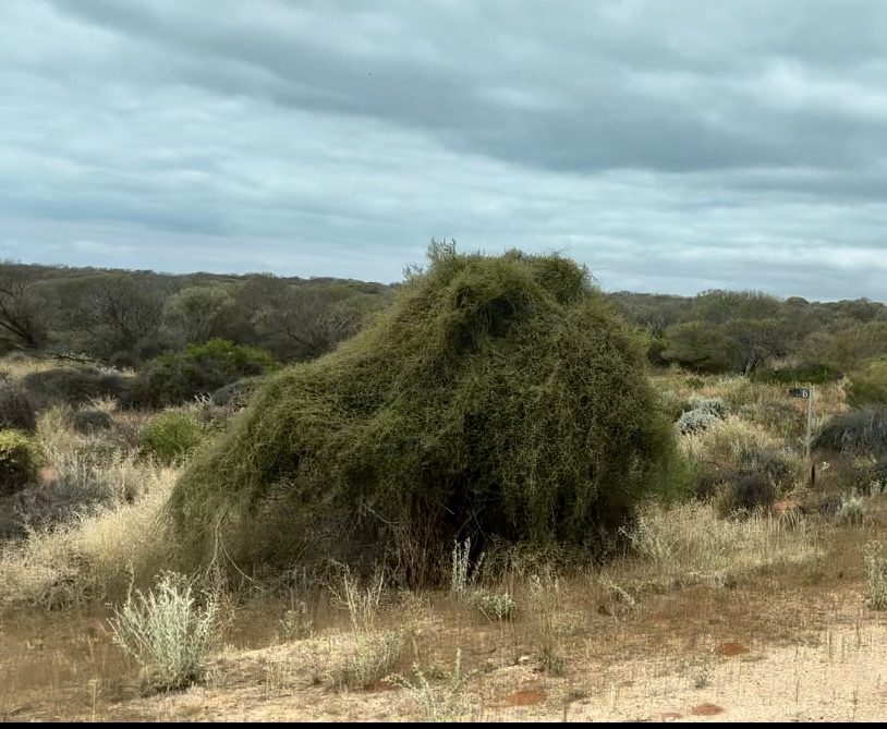 From the bay we drove back out of the park and revisited the sites that we rained out the day before. At Eagle Bluff (yesterday we were almost blown off the boardwalk) we now saw small sharks grazing in the shallow waters along the coast. Back on hwy 1 we drove further north to Carnarvon. The road is straight and therefore suitable to overtake the long road trains you meet along the way. The landscape varies from low shrub to higher bushes and sometimes sections with trees. It is mostly flat and desert-like landscape.