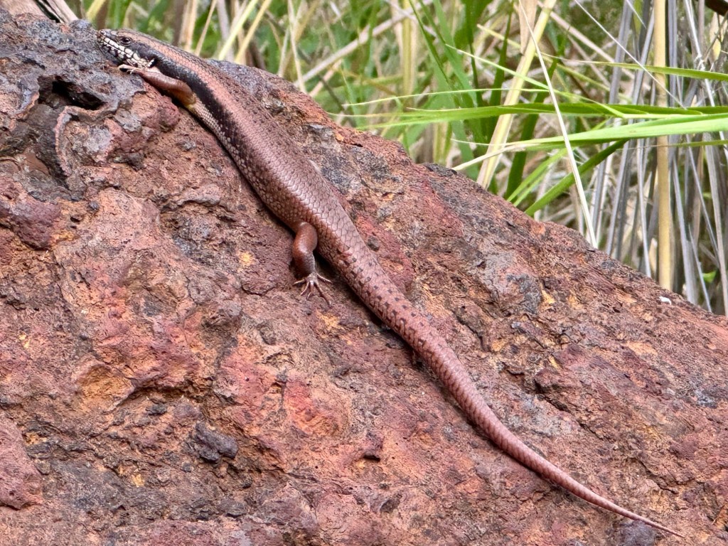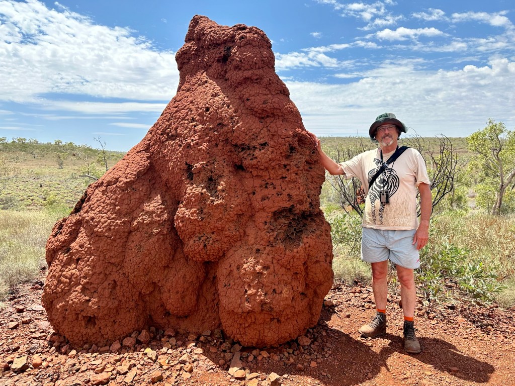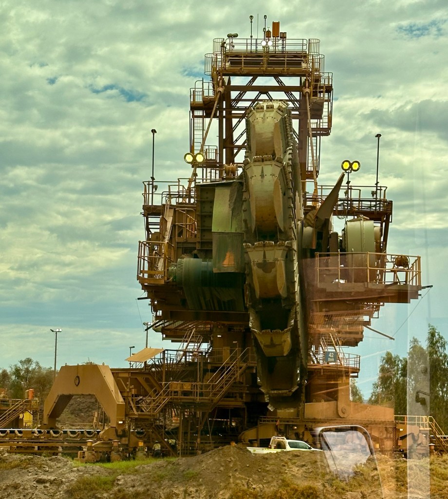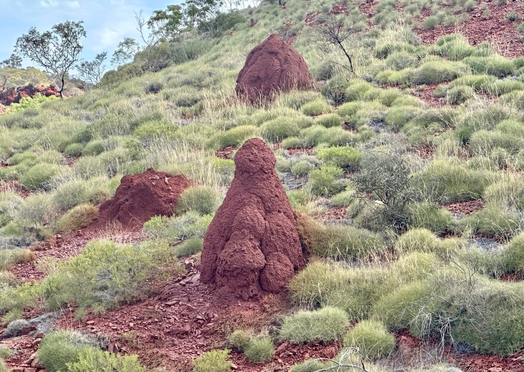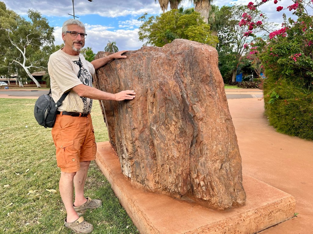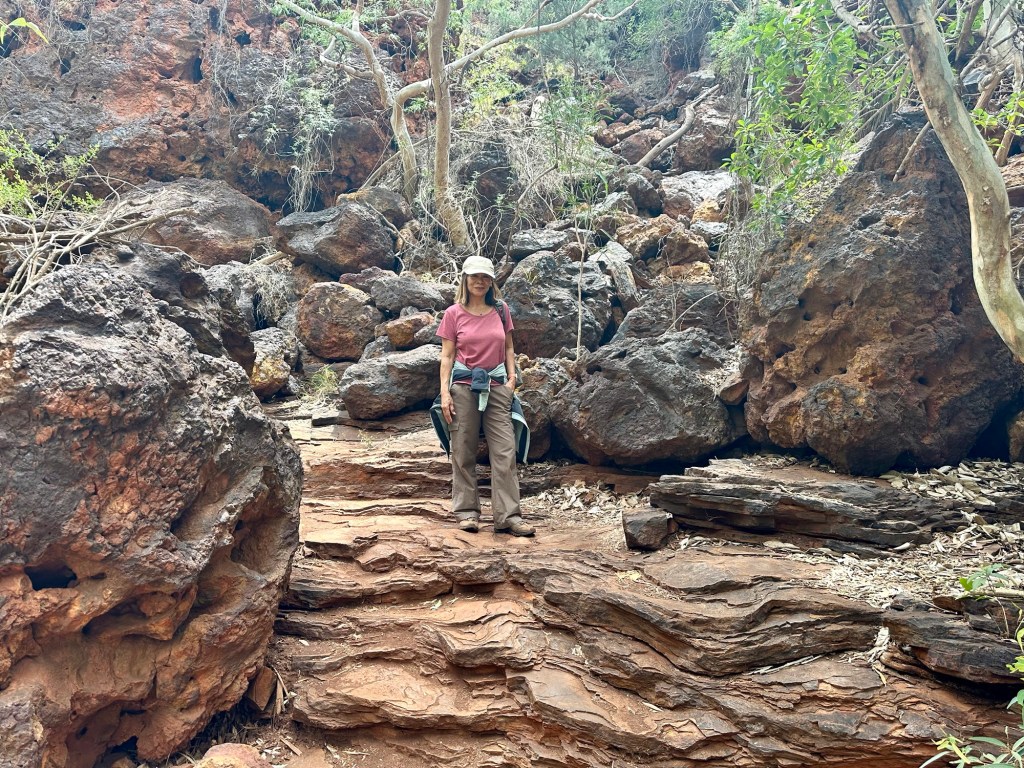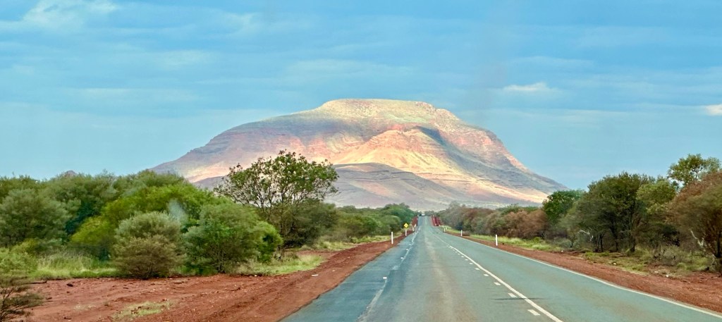 The iron ore mining town of Tom Price lies 540 km further inland. The road is good, and it starts to get hilly the closer you get to the town. The hills around Tom Price are primarily built up by hematite and magnetite. The concentration of these minerals is so high that they only have to blast the mountain, crush the rock, and send it by train to the coast for shipment overseas. We booked a mine tour to get a better look at the mining process. At one point there was a deep hole in the ground where they had followed a high-grade seam till it ran out. Many of the hills/mountains around the mining area form the Karijini NP. We are spending now our second night at the park’s Eco Campsite. The main attraction is the many deep gorges the water streams have cut into the deep-sea sedimentary hematite rock over millions of years. We have now visited 4 of them. In 2 we climbed down for a refreshing swim and one we climbed down and walked along the gorge floor out of the mountain. Given both Jamaliah’ hernia and my condition we are immensely proud of these achievements and enjoyed them.