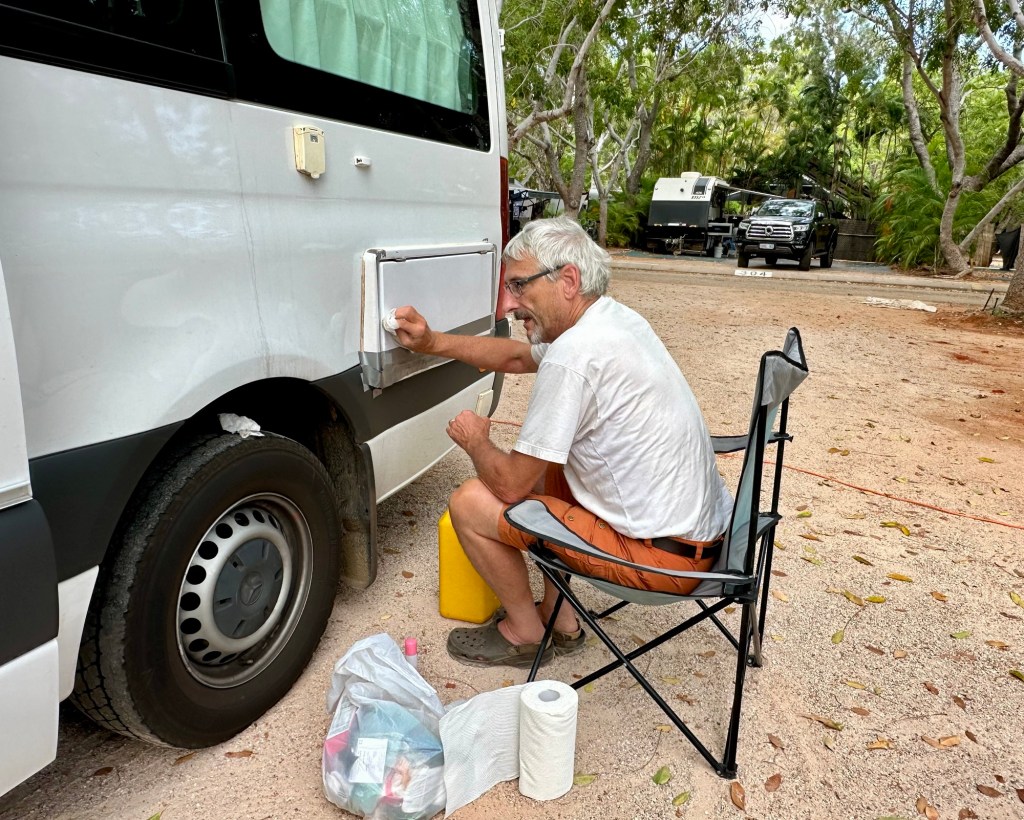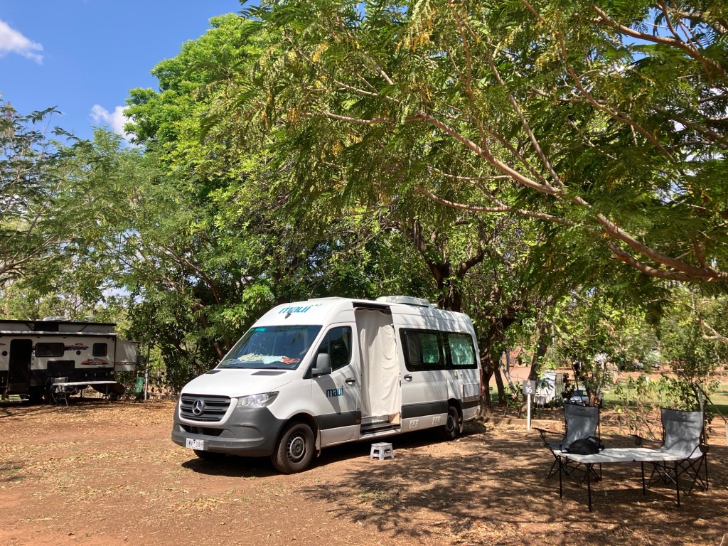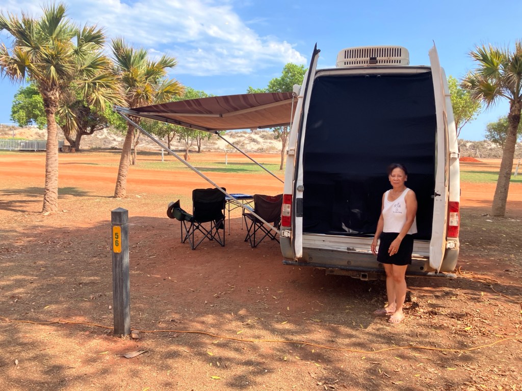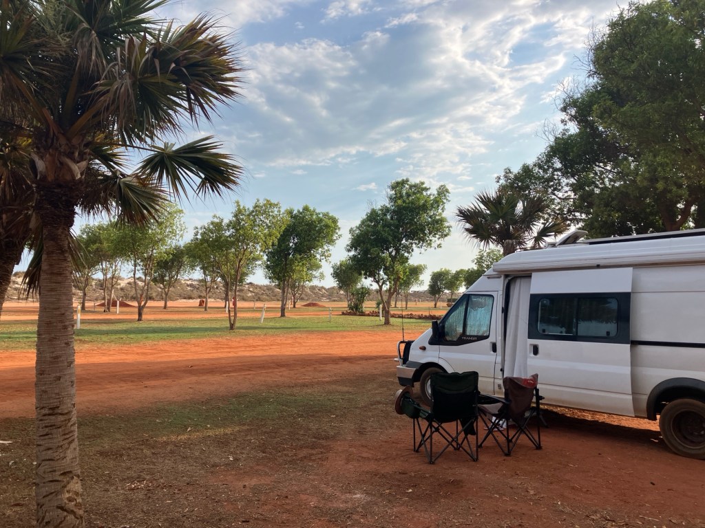 We arrived in Broome on Sunday and stayed at another campsite on Cable Beach then last time. This one had a swimmingpool which Rudy needs to cool down. The campsite is pretty empty. Many group of tents are close together. They belong to the foreign young workers on their 1 – 2 year work visa. Staying in a tent saves them $50 per week.