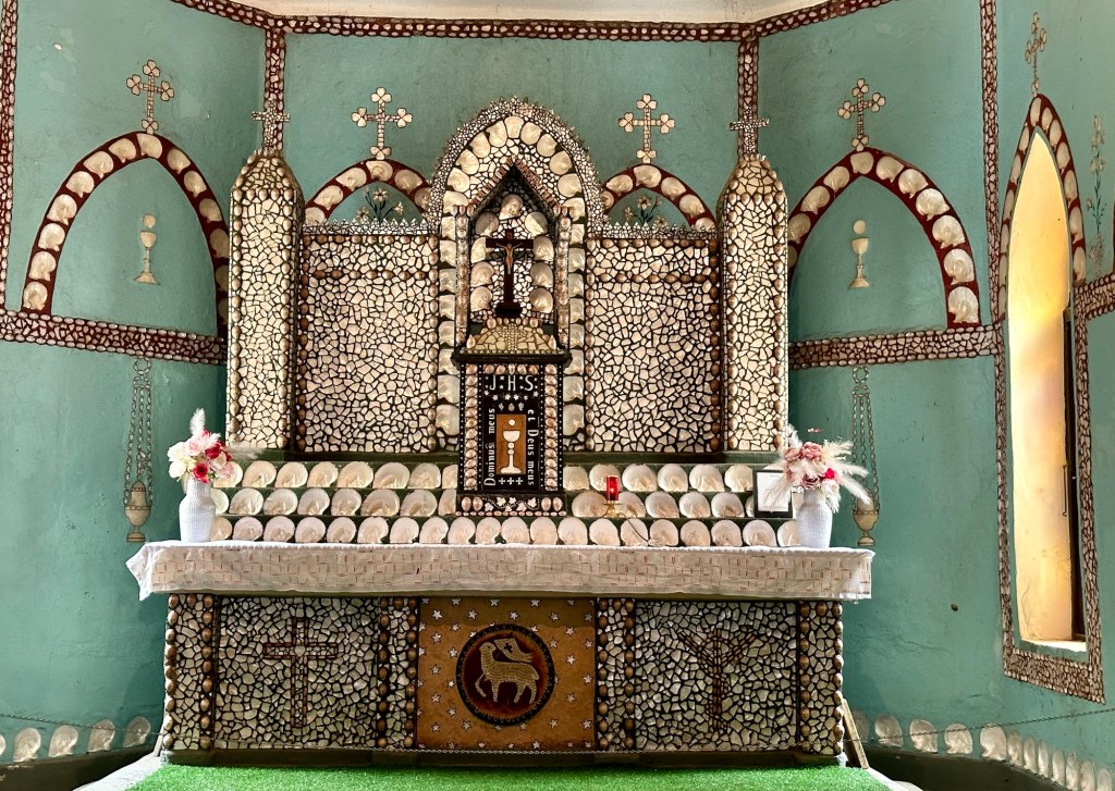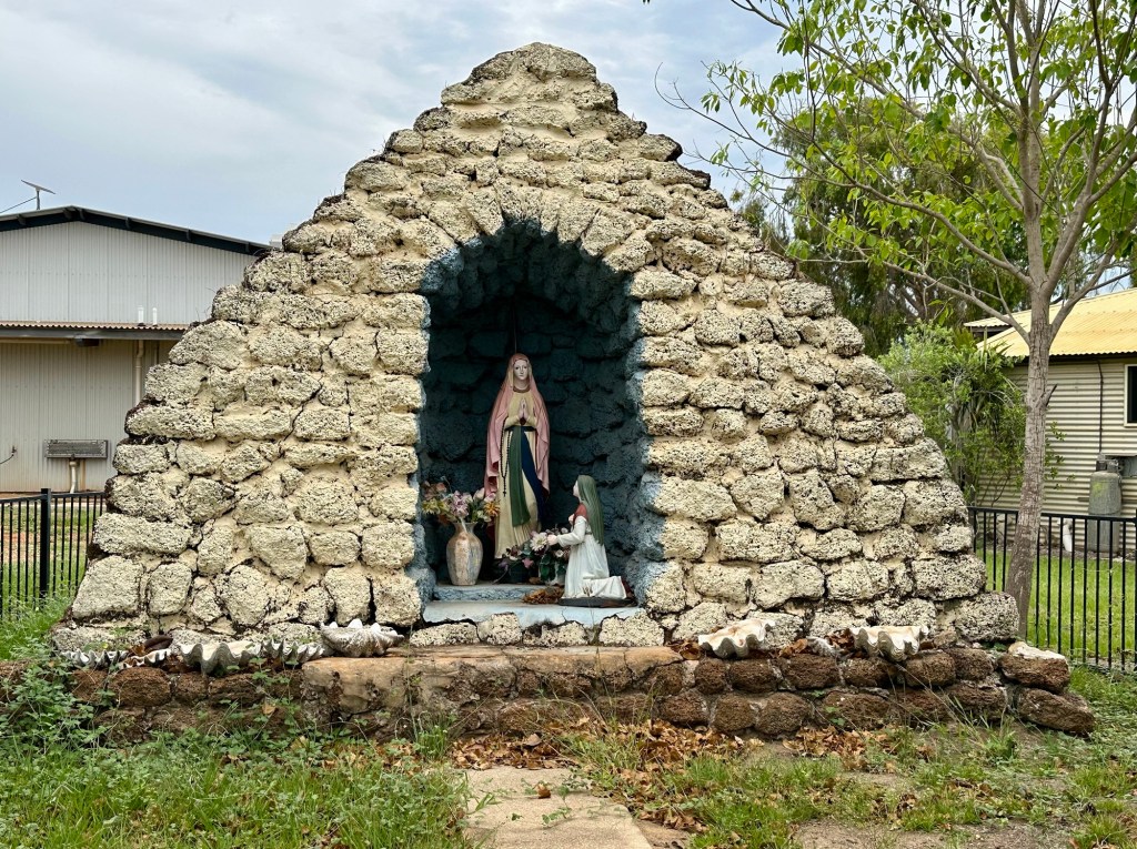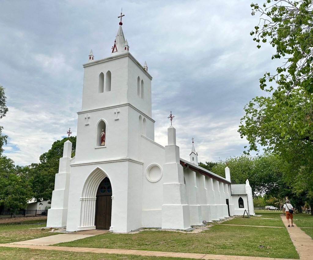 We had rented the camper till Tuesday. Therefore we drove North of Broome on the Dampier peninsula to Beagle bay. This aboriginal township has a lovely stone church built by the converted locals in 1910. Apparently there are still monks running the local school. The next day we cleaned the camper and transferred our stuff back to Stuart’s camper. This took a while because we had to find places for everything again. In the afternoon (after fueling and shopping) we drove on to the Eighty mile beach camping The name is correct. We are just behind the dunes and on the beach you see it going on for ever from East to West. There are many wallabies hopping around the campsite eating grass and other items. They come close to you but are not frightening. It is nice to see them hopping around. Clearly made for this bushy type of enviroment. On the beach you see tracks of turtles. It is nesting time now. At high tide they come onshore to lay their eggs. We missed them last night (high tide at 1:00 AM) and at 5:00 (sun rise) they had already gone back to sea. One latecomer was struggling to get back to the sea as the low tide had gone very far out. We have decided to stay another night here hoping to catch the turtles laying eggs.