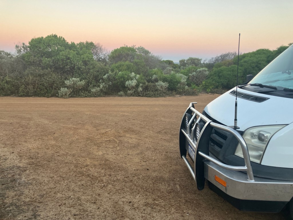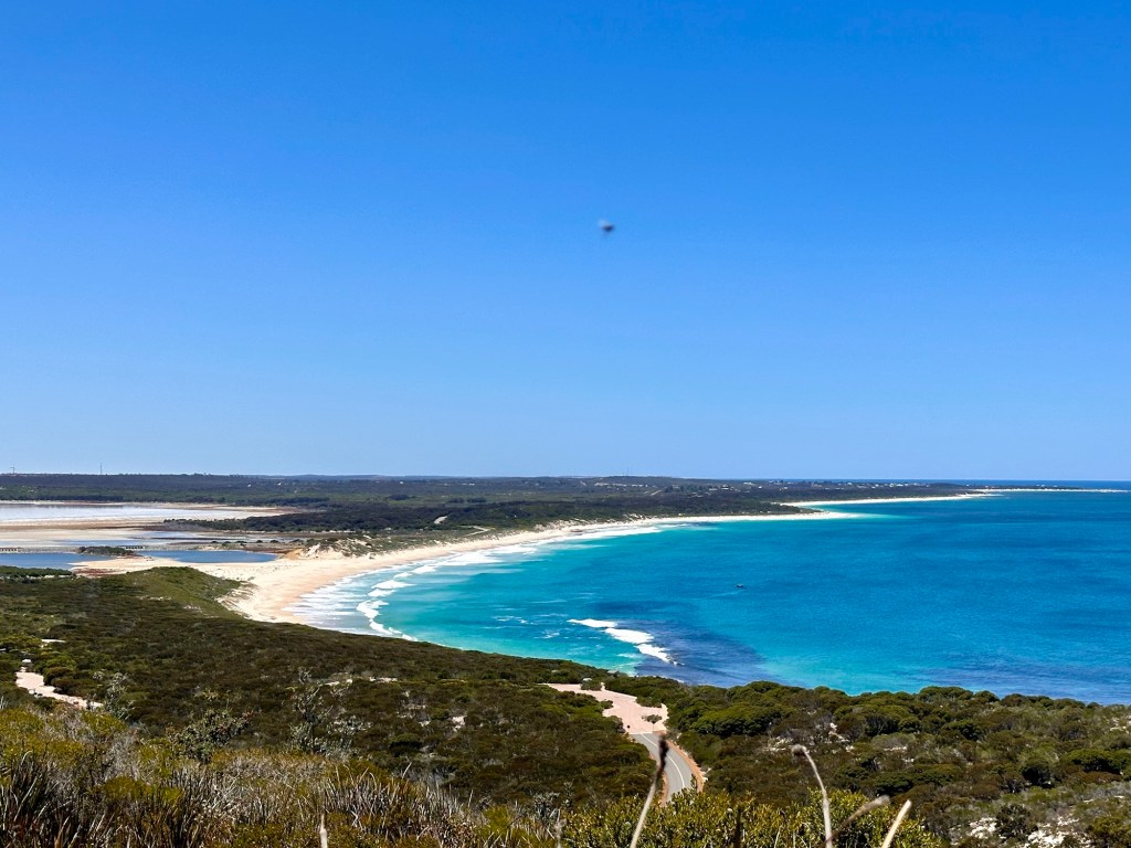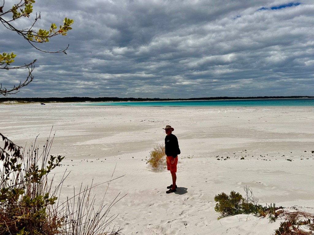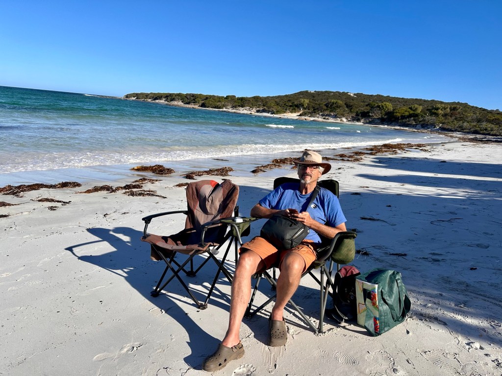 The quiet town has several nice white sand beaches. Several are in the adjacent Fitzgerald Biosphere Park. We drove through the park and stopped at several of the lookouts and campsites. The flies were intense and it was too early to stop for the day. We therefore took the graded road east along the coast to this secluded commercial campsite along the beach. We put the chairs out on the beach and enjoyed watching the waves coming in on one side and the sun rays on the other. The wind keeps the flies away.