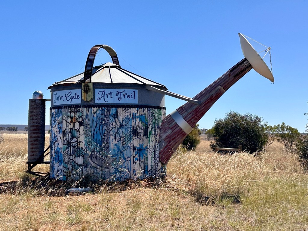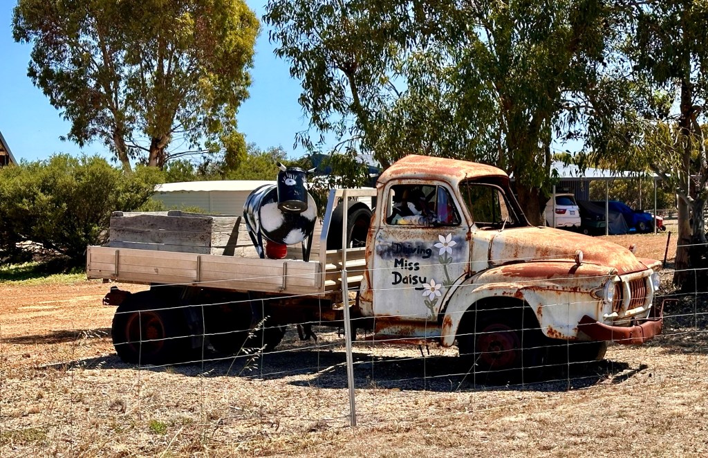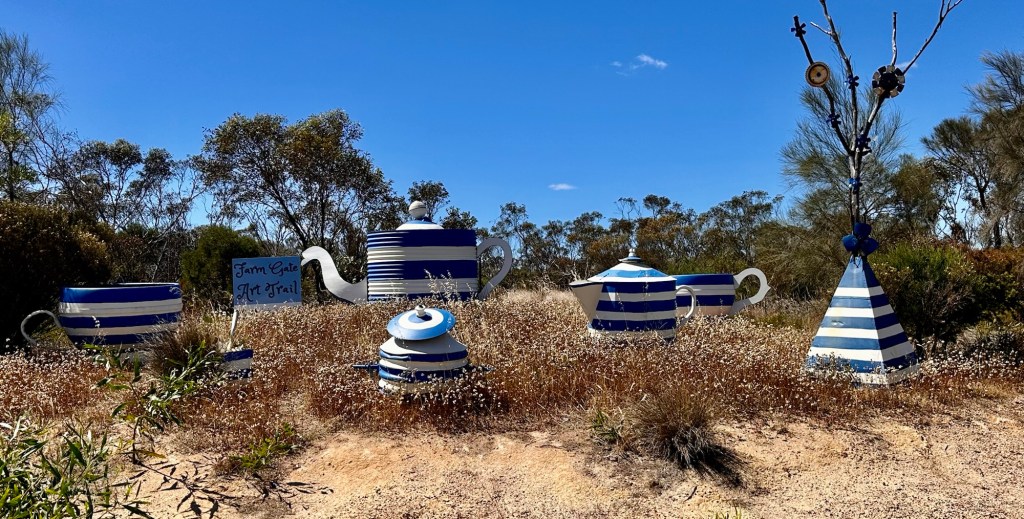 We drove back to the coast at Hopetoun. You could drive all the way to the end of the jetty where you fill your drinkwater tank. Along the way we made several stops to take photos of the “Farm gate arts”.