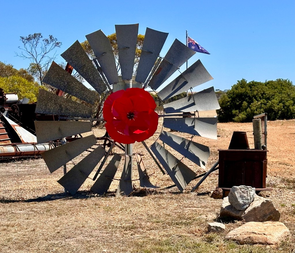 After today’s total of 345 km, we arrived in Ravensthorpe and stopped at the town free campsite. The town has a mining history starting with gold followed by copper. These underground mines are now closed. Around town you now see hills of rock dug up out of a nickel and a Lithium mine. The town has several building’s from the time of the gold rush. One modern attraction is street art. Ie paintings on grain silo’s. On another note there is a sobering memorial commemorating a massacre of many aborigines in 1880 following the killing of a settler who abused a local child.
