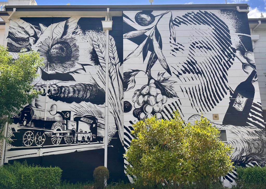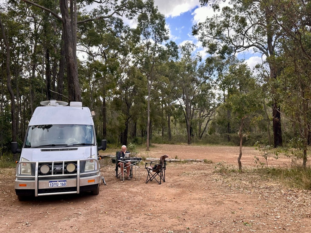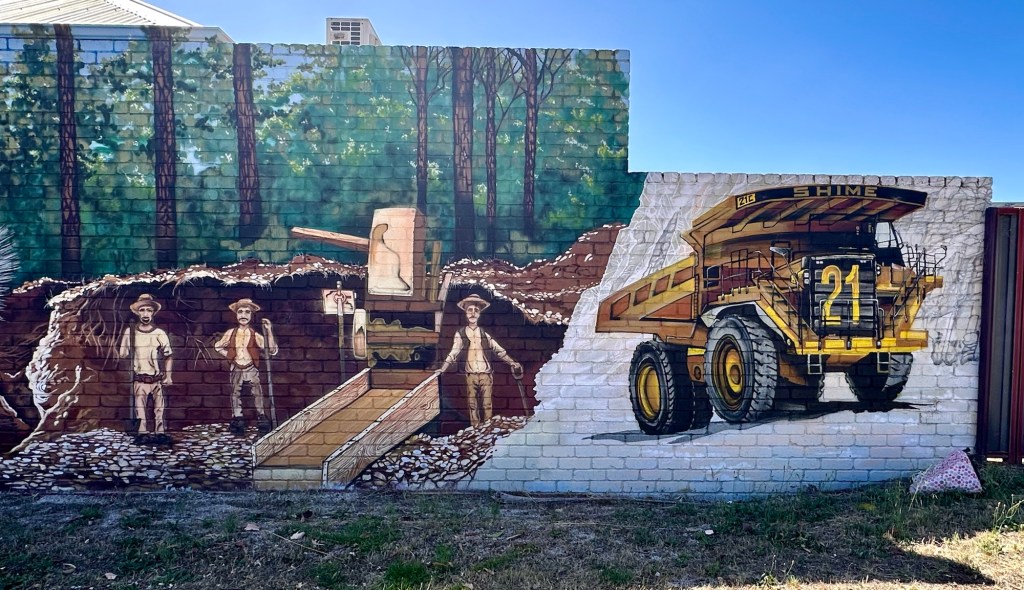 We are not too far from Perth. Our end-goal for Christmas. We start driving later and drive slower. Today we left the wheat plains for the forested hills further west. Mining activity is going on in these hills. From gold in Kalgoorlie, it is Tin, lithium and other minerals now. We had a look into a deep open pit mine in Greenbushes Mining started with Tin in 1888 but now concentrates on Tantalum and Lithium. All minerals found in the local Pegmatite rock (a type of Granite). The pit was closed down and reopened several times. Ownership was also for ever changing. Outside town are several worker camps for people doing week on week off shifts. Fortunately the forests are large and the many hills hide the mining activity. So the area is still touristic. To attract more tourists some towns are “RV” friendly which means there is an area set aside for free camping. This one we are staying is next to a sport field and a water reservoir.