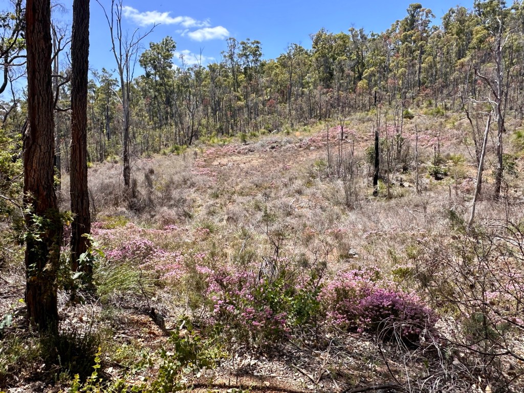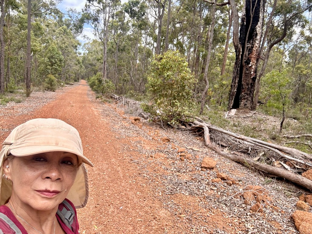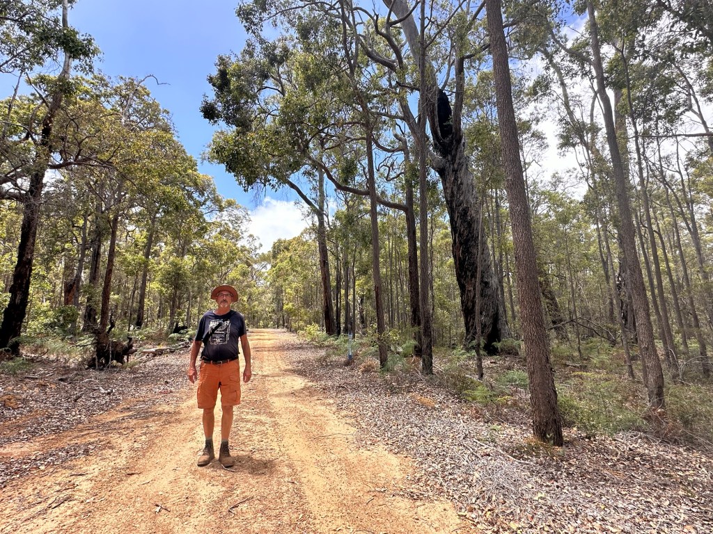 We took a “rest” day and stayed at the same place. Well rest day from driving…. Not from walking! The idea was to do a short walk around the lake behind the campsite and after that make a start with the annual Christmas letter. After jumping over some fence wires we ended up on a nice gravel path through the forest. The signs indicated a circular walk (Greenbushes loop) through the forest. On our GPS we could follow the route. It was a great 13 km walk through a Marri/Jarrah tree forest. At one point we followed the 1000 km long Bibbulman track from Perth to Albany. Like any walks, the first hours are fine and relaxed but after several hours you get a bit tired. We looked at the GPS much more frequent hoping that we could find a shortcut which was not there. Luckily it wasn’t a hot day and with a cool breeze, a good day for walking (unfortunately the flies were awake too).