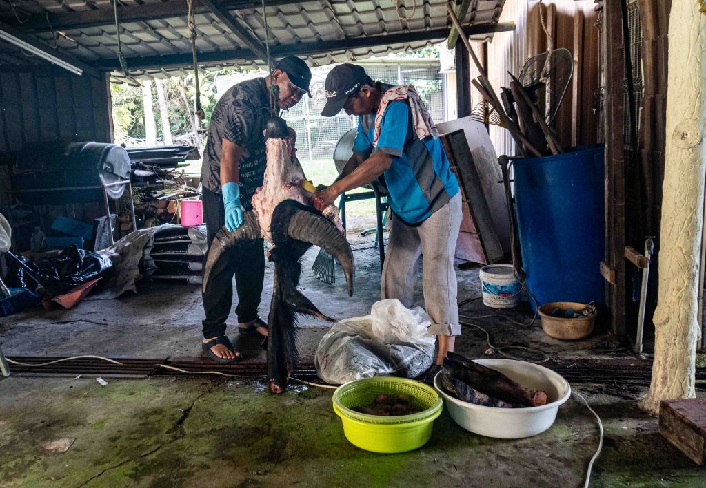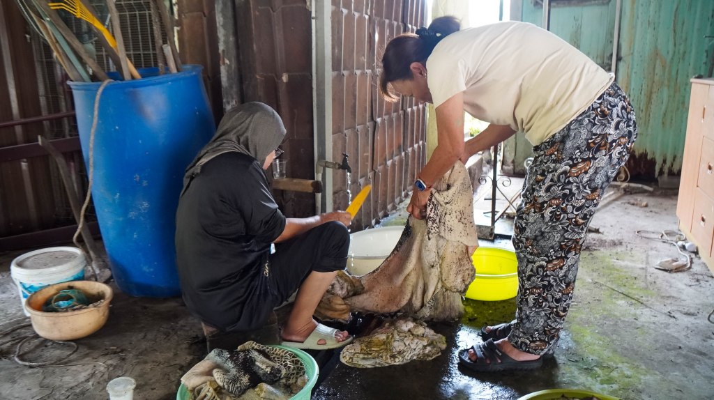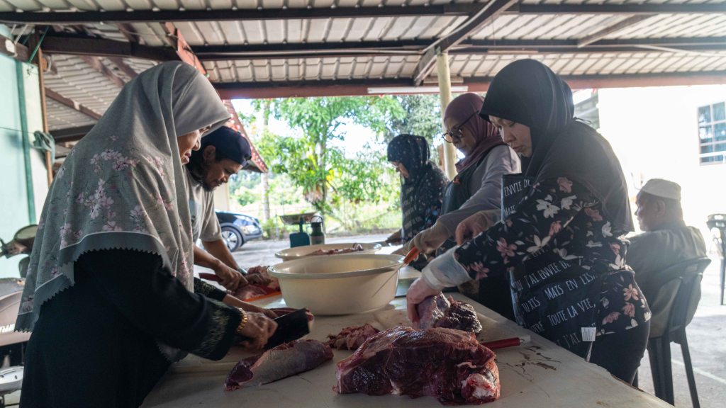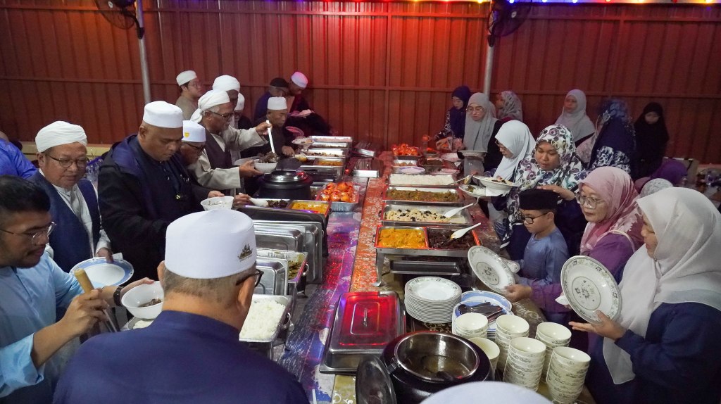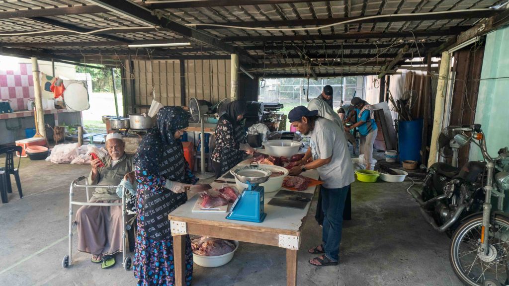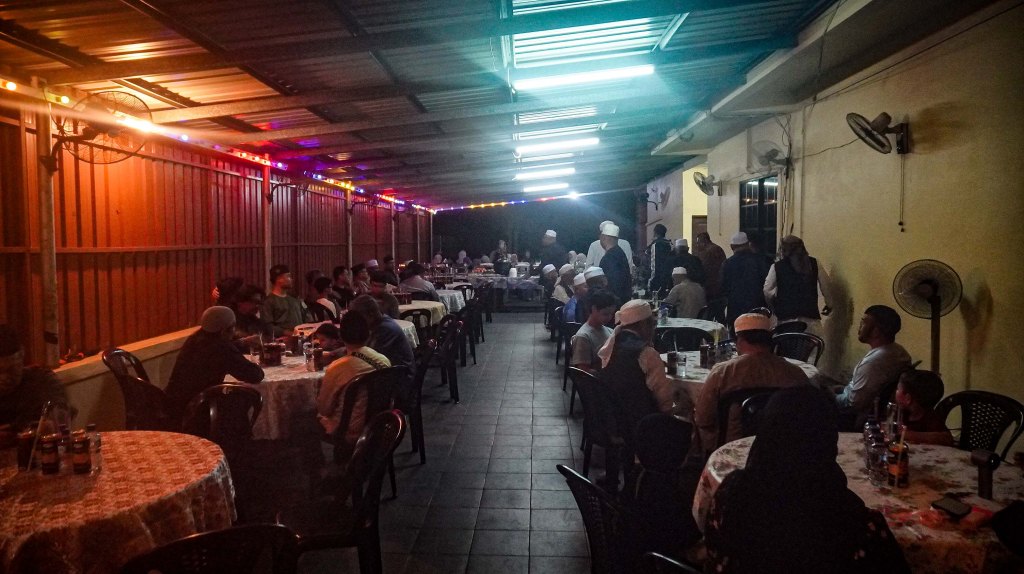 We were picked up from the Airport in the capital Bandar by Jamaliah’s sisters and brother-in-law and driven to Bakong on the coast at the other side of the country. Brunei is a small Sultanate on the North East coast of the island of Borneo. It is only 80 km to Jamaliah’s parents house where we spent the next 14 days. The first few days were filled with family visits and preparation for the celebration of Jamaliah’s parents’ birthday (95 and 88 years old). This has now become a tradition whereby a cow is slaughtered and the meat given to relatives and friends who join for a meal under the carport and extra pavilion set up outside the house. Large tables were set out to accommodate the 150+ guests. Jamaliah’s father supervises the preparation and boiling of the traditional soup, while the rest of the meal is catered for.