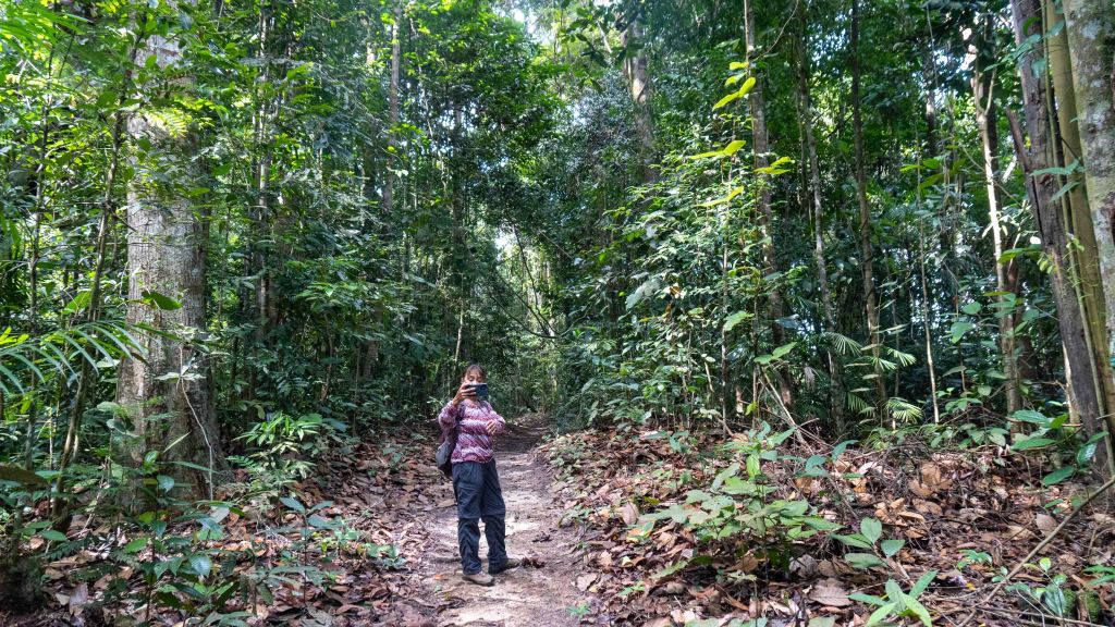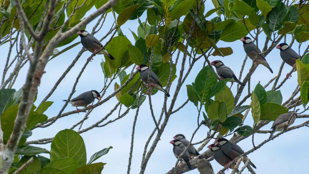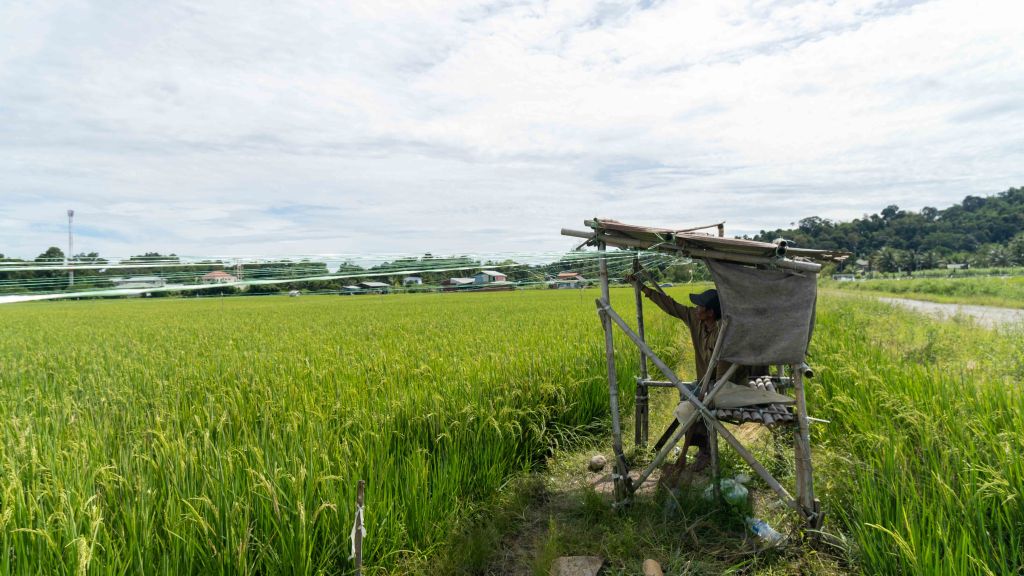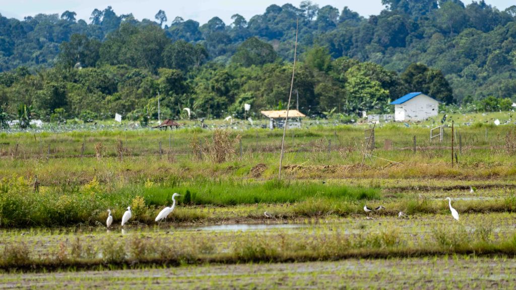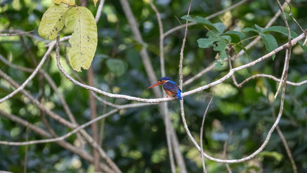 It was rainy season. This meant severe rain and thunder storms during the night and sometimes during the day. This limited the local trips we could make. On one trip Husseini and Siti-Mariam took us to visit the rice field in the Tutong district in the hope to see and photograph different migrating birds. The fields are in different stages of development. Some are just planted while others are already ripe. There are small shelters in the field where migrant laborers operate a string system connected to bells and silver paper to scare away the birds. We had lunch on a viewing platform and managed to take some interesting pictures of the birdlife around the fields. After lunch we drove over the long new bridge connecting Bandar to Temburong. Before having this bridge, this area can only be visited using speed boats via the Brunei bay. But following the construction of the direct connection to the capital more visitors make it to this mountainous jungle area. More and more trails through the jungle are being developed. The tourist accommodation along the Sungai Temburong River invite ecotourists to take a boat ride up the river and see the diversity of the jungle around the Kuala Belalong Field Studie Centre.