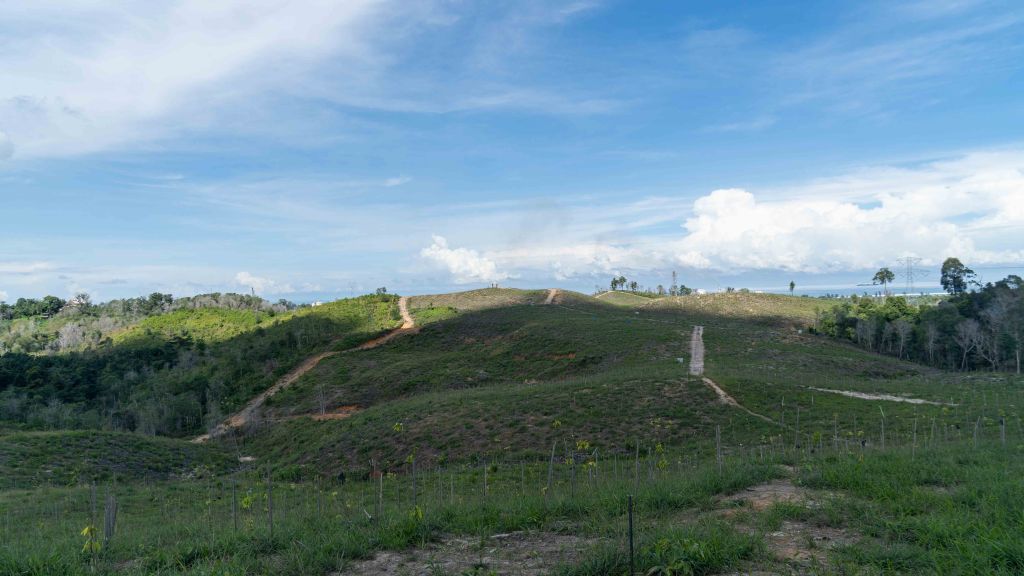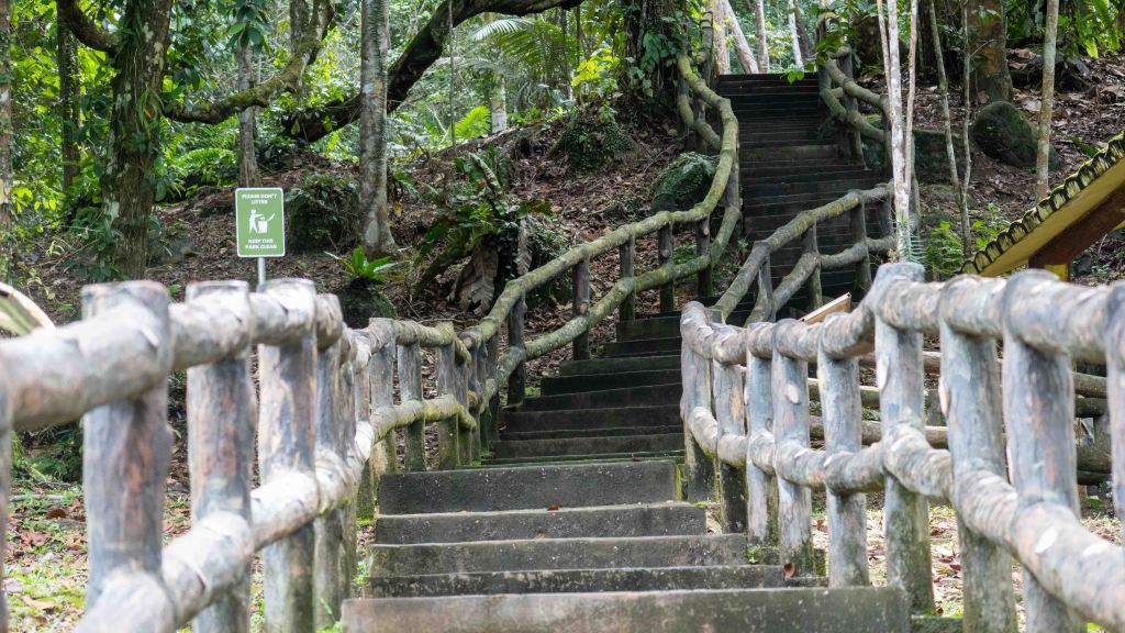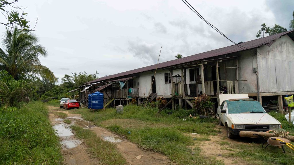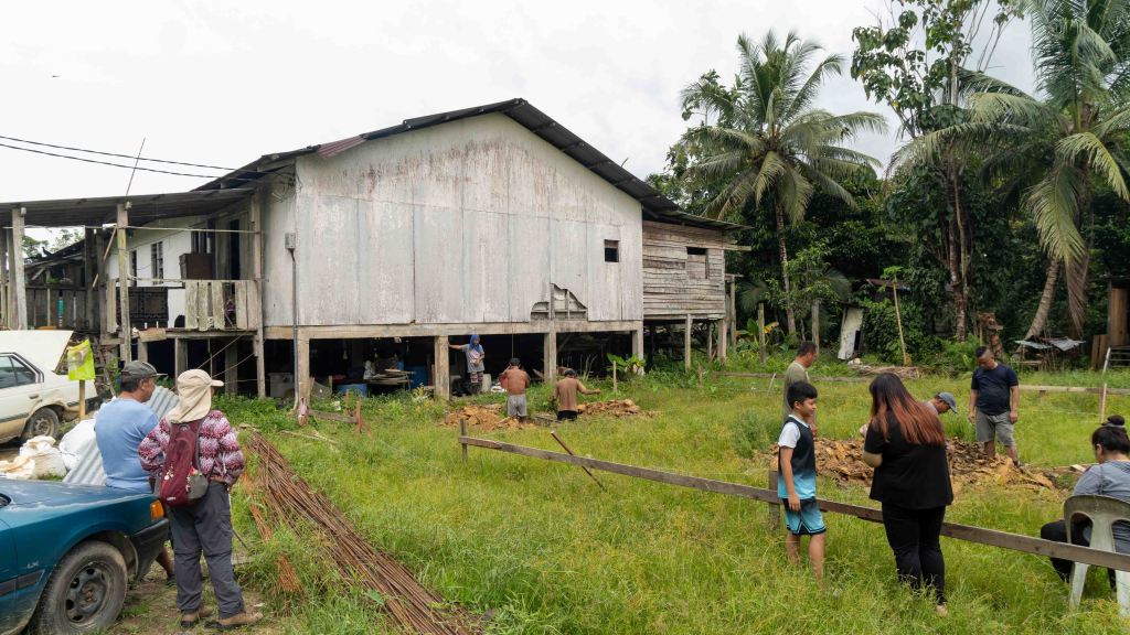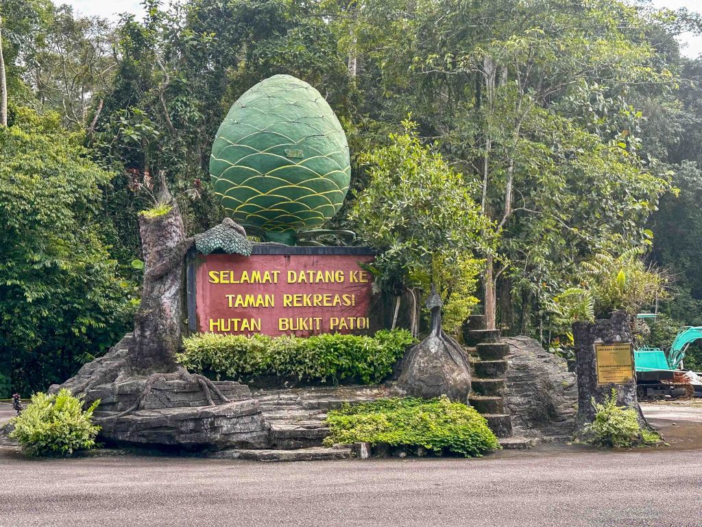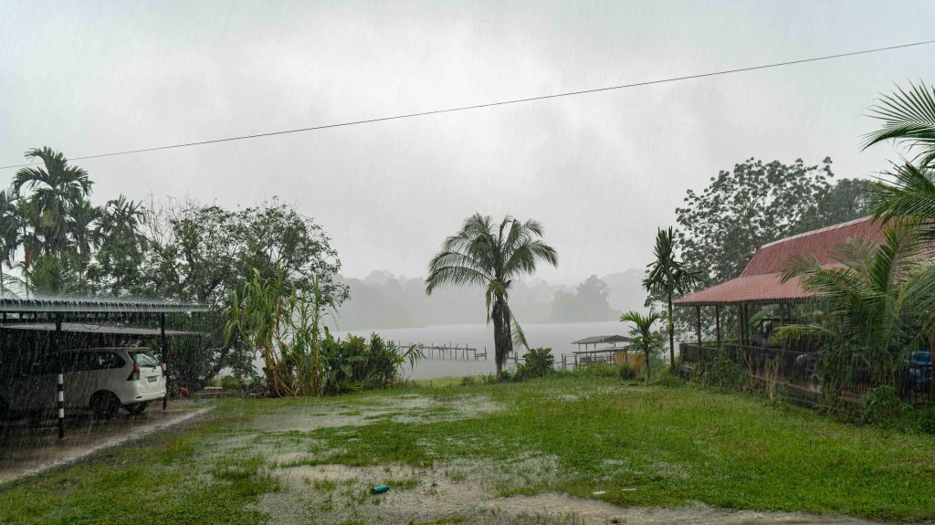 On another trip Jamaliah and Rudy drove a 4×4 pickup truck to the end of Labi road. This is one of Rudy’s favorite roads. It is tarmacked and runs over the top of the hills for 50 km to the border with Sarawak (Malaysia). The road was built in the 1920’s by Shell in their search for oil. They never found any there but instead some years later, in the swamps along the coast at Seria. The road cuts through primary jungle. In the valley at Labi, there is extensive farming of Limes, Papaya, Mango, Cassava, Rice etc. At the end of the road lies Bukit Teraja with at its base a longhouse. The mountain is 417 m high. The old road/paths to the top have been washed away or are overgrown. A new route is under development. In the past (1989-1992) Jamaliah and Rudy made many trips exploring the area with its many waterfalls. On the way back to the coastal road a detour was made to an old rice planting area close to the Belait river. The road is in very poor condition. You could no longer reached the river. Instead, we parked the car and walked over a small bridge to the nearby longhouse. The longhouse community was busy building an extension to one of the 2 longhouses. Years ago, Rudy visited this longhouse area. It was made of wood then. This burnt down some 10 years ago. With help from the government, a new concrete longhouse was built. The last trip over the eroded road from Labi towards lake Tasek Merimbun was made in pouring rain. At one point we (Chris and Rudy) had to turn back and find another road. The road conditions were too bad. Tasek Merimbun lake was once a well-developed recreational area with several small islands in the lake connected with wooden walkways. You could also rent boats here. Unfortunately, this has all disappeared
